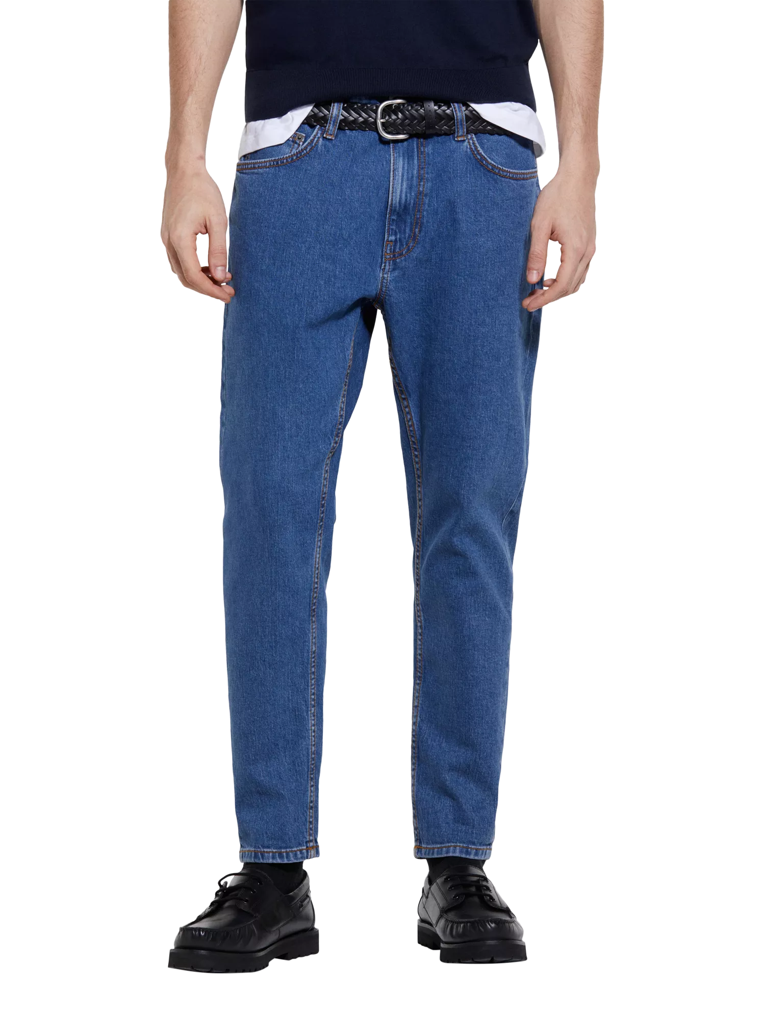 Carrot fit denim jeans in comfortable cotton, featuring 5 pocket detailing and a cropped leg. They are finished with an enzyme stone wash for a vintage-inspired look.