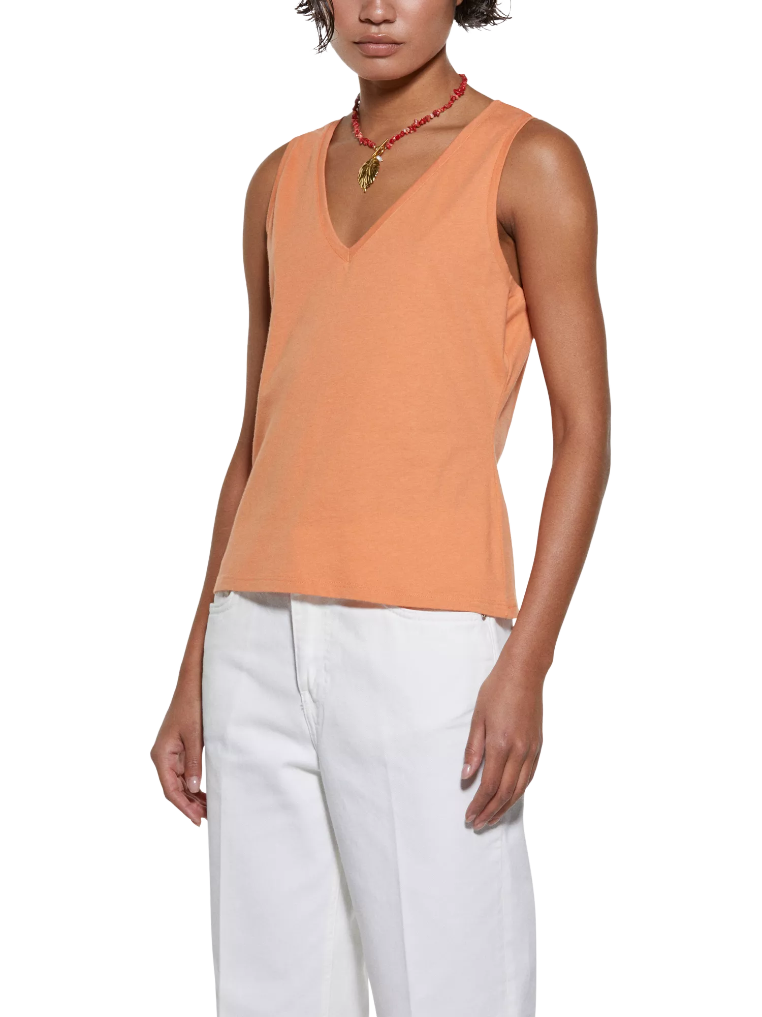 Step into your day with this SISLEY sleeveless cotton top – light, smart, and ready for anything. Its v-neck cut and simple style make every outfit easy, inviting you to mix, match, and make it your own.
