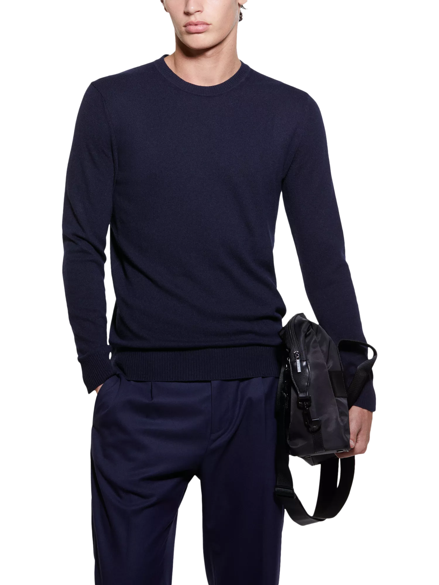 Regular fit sweater in viscose, wool and cashmere blend. Crew neck, long sleeves and slightly dropped shoulders.