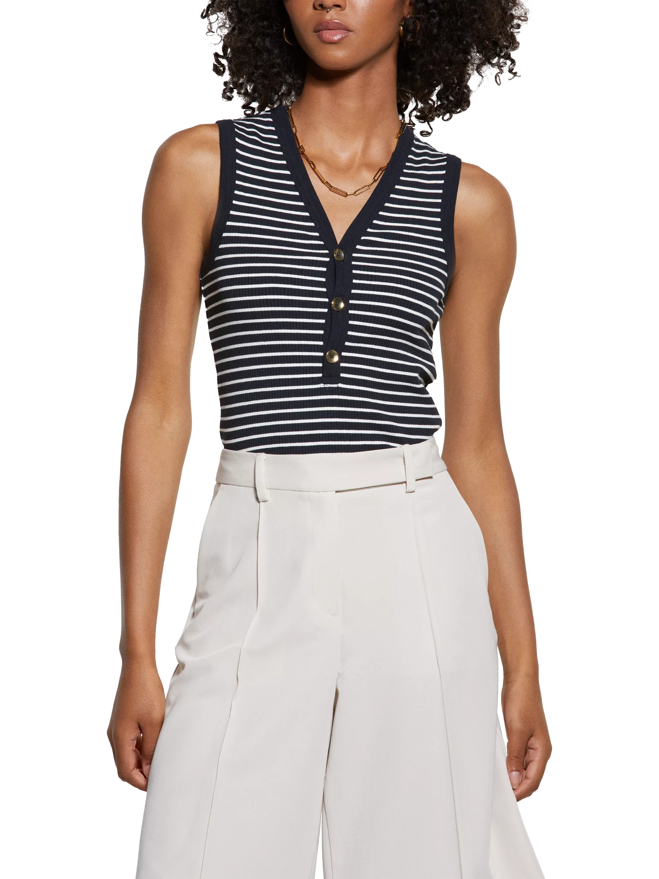 An everyday essential striped tank top. The ribbed finish and soft blend keep you comfortable and ready for anything, while the V-neck design lets you express your personality in your own way.
