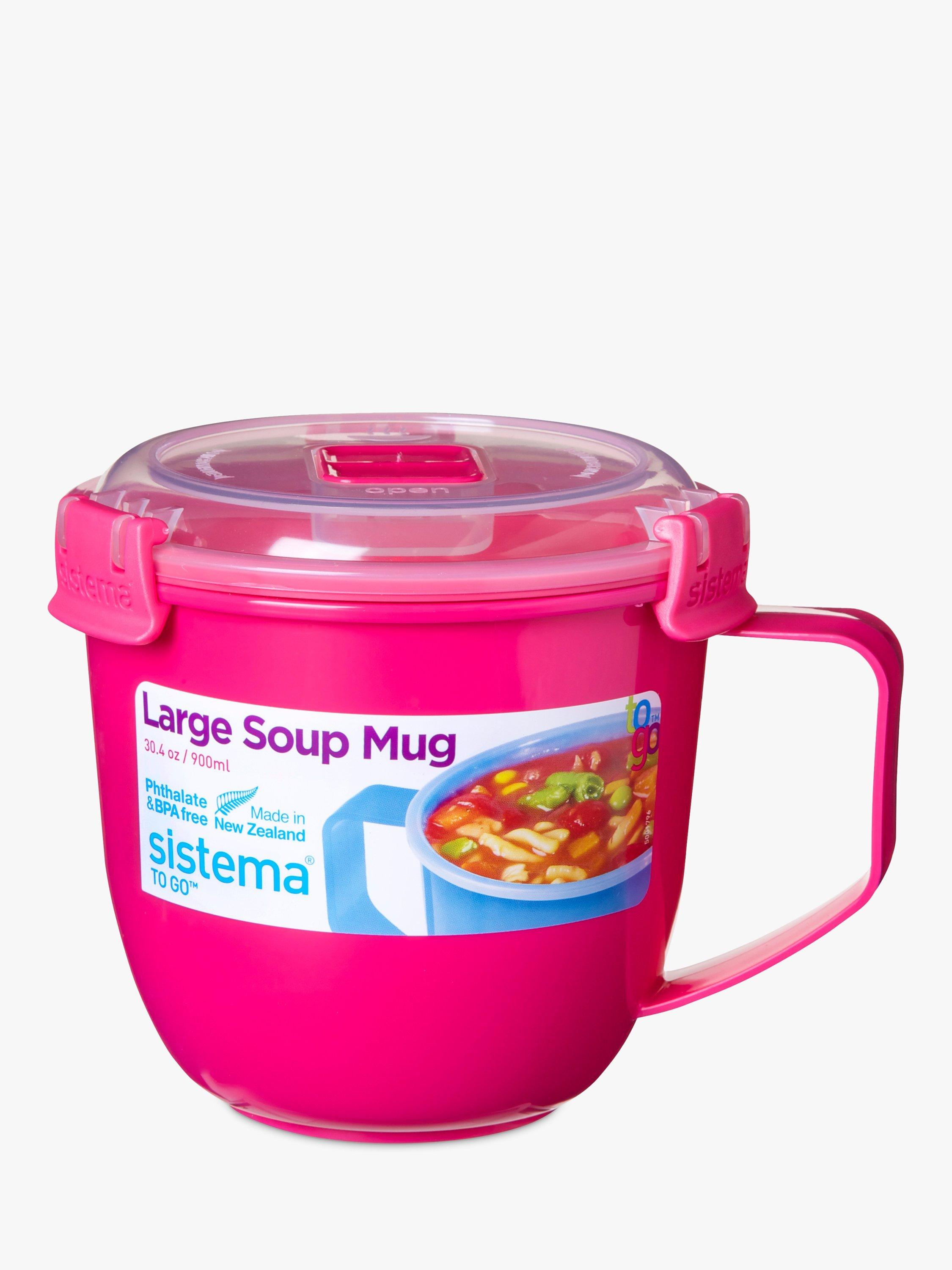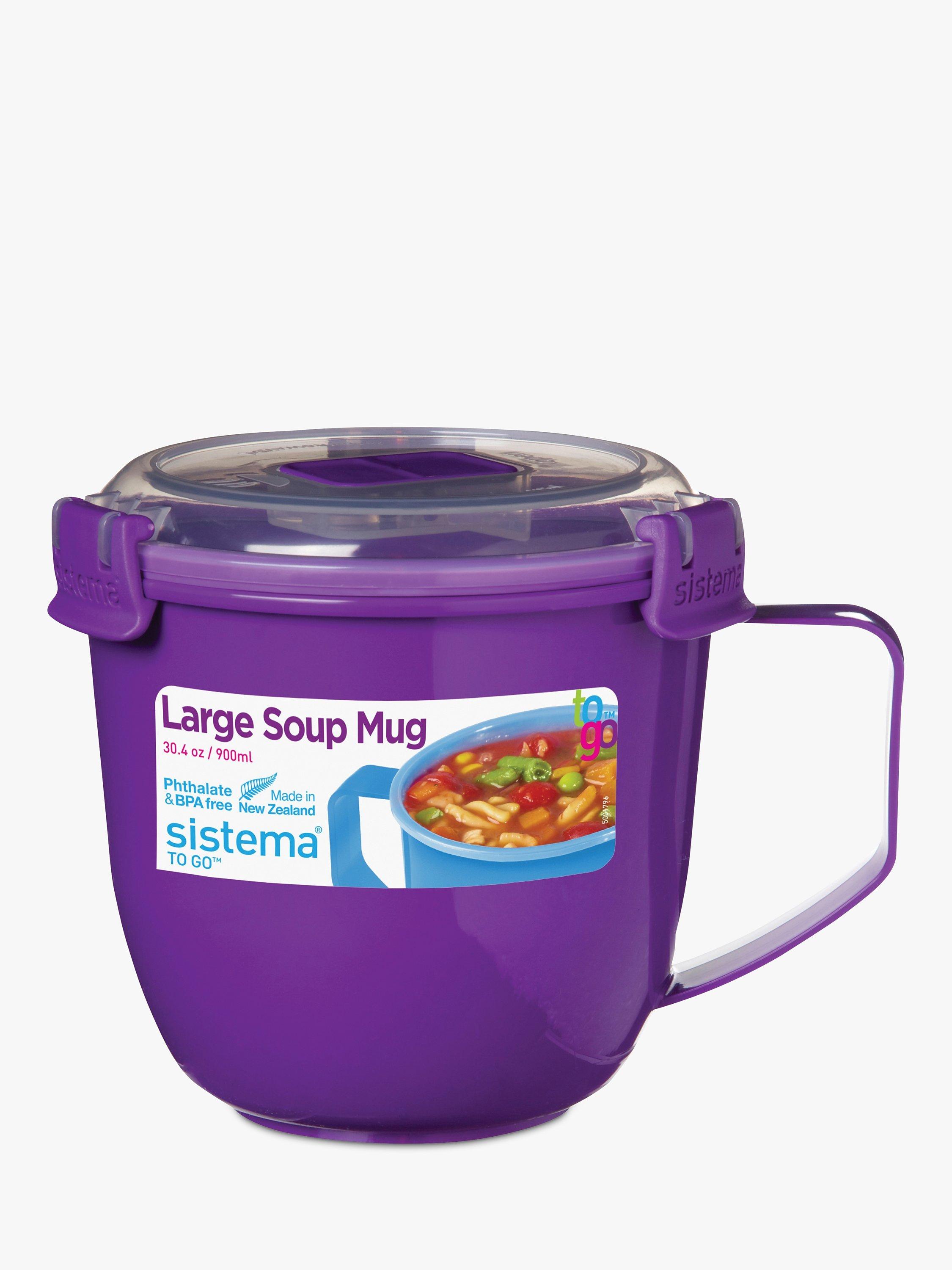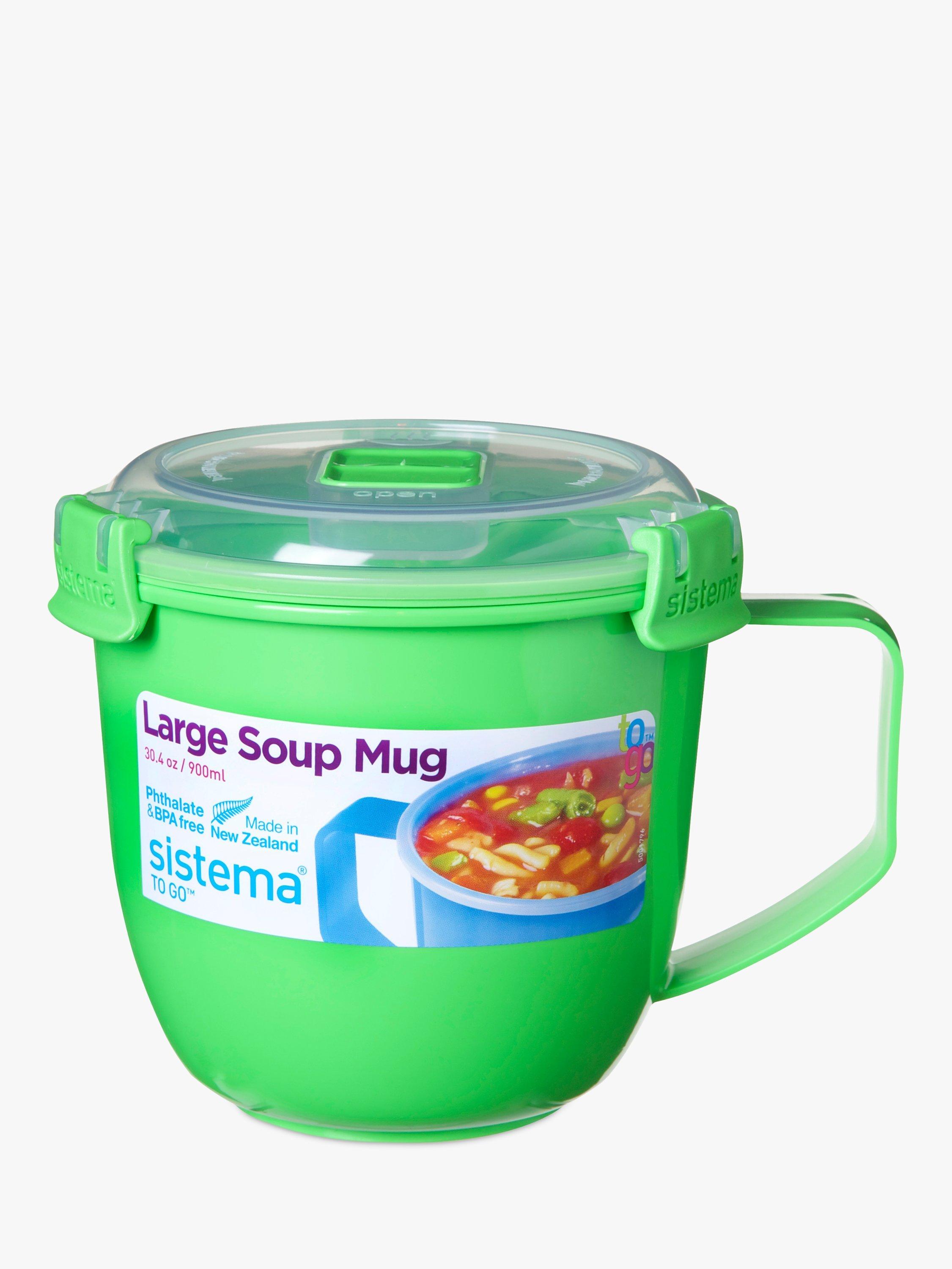 This 900ml capacity Sistema Soup Mug is ideal for soup on the go. The perfect way to transport, store and eat soup, noodles and hot drinks, it can be used in the microwave to heat up food and then eaten straight away or kept for later.