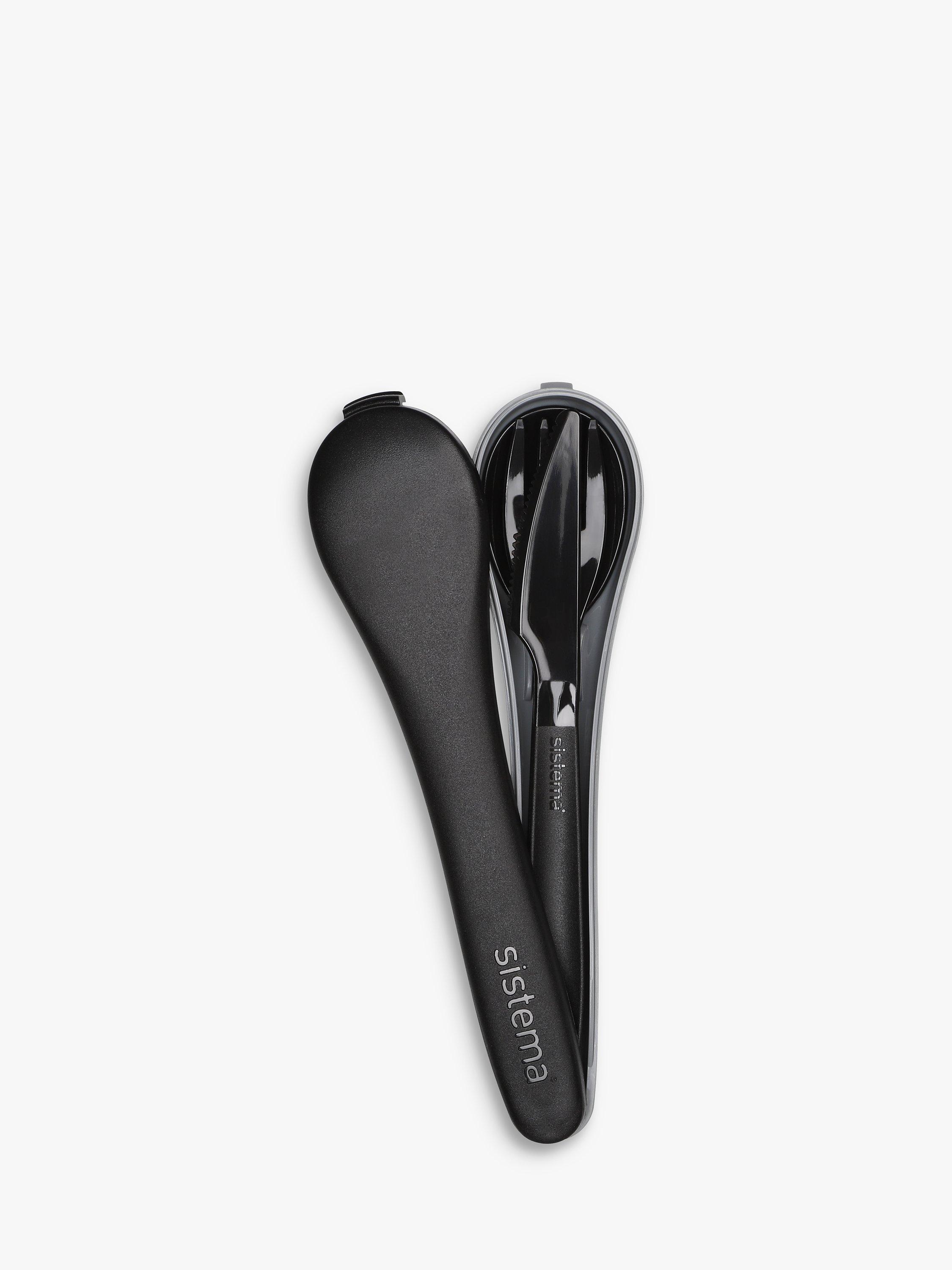 The personal cutlery set comprises a full-sized knife, fork and spoon that easily click together and are dishwasher safe for hassle-free cleaning.