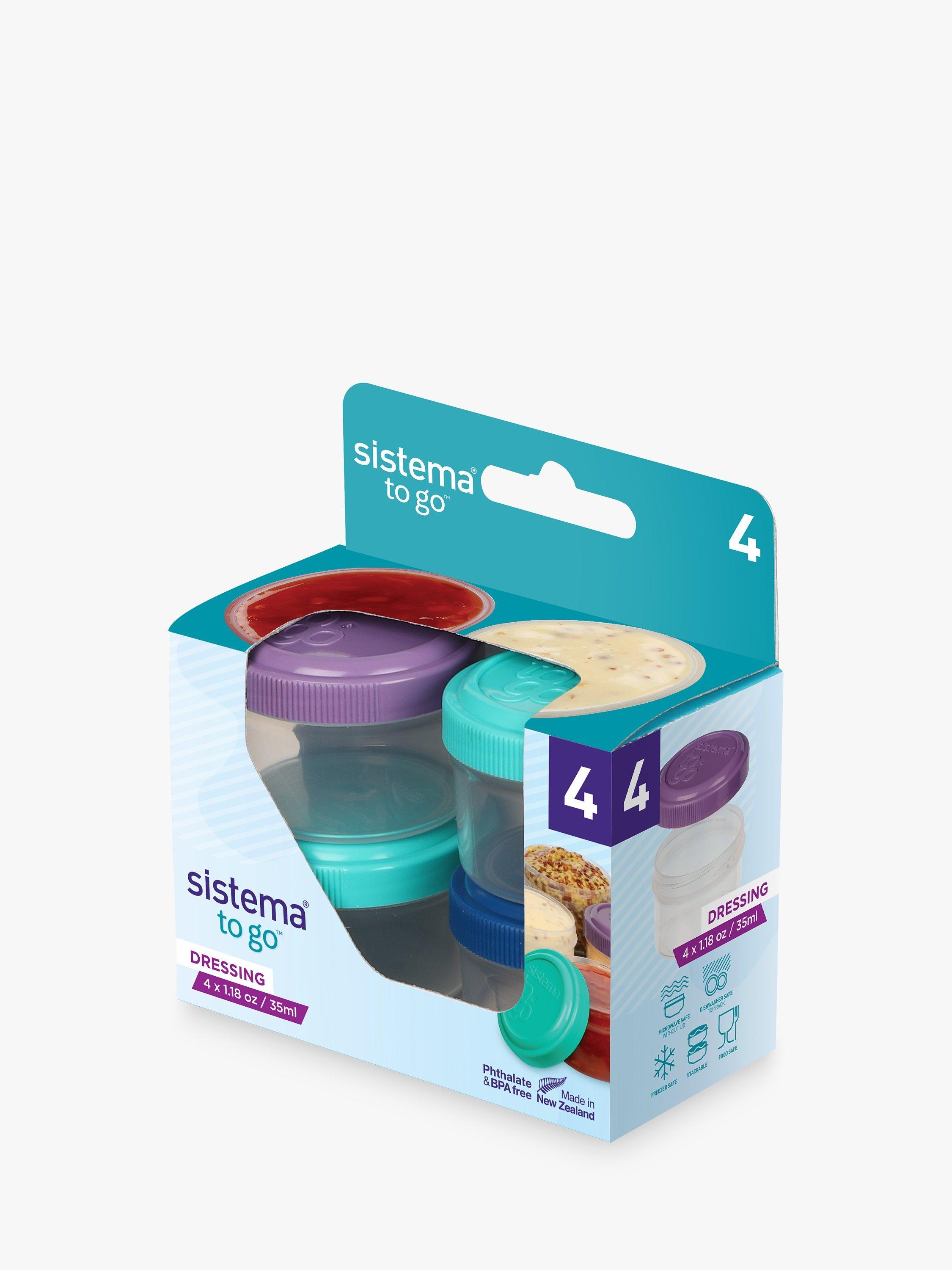 Perfect for picnics, outdoor parties or lunch-on-the-go, this set of four dressing pots are from the Sistema-To-Go series. The pots are stackable with screw-top lids to keep your dressing, dips and sauces separate until ready to drizzle over salads and lunches.