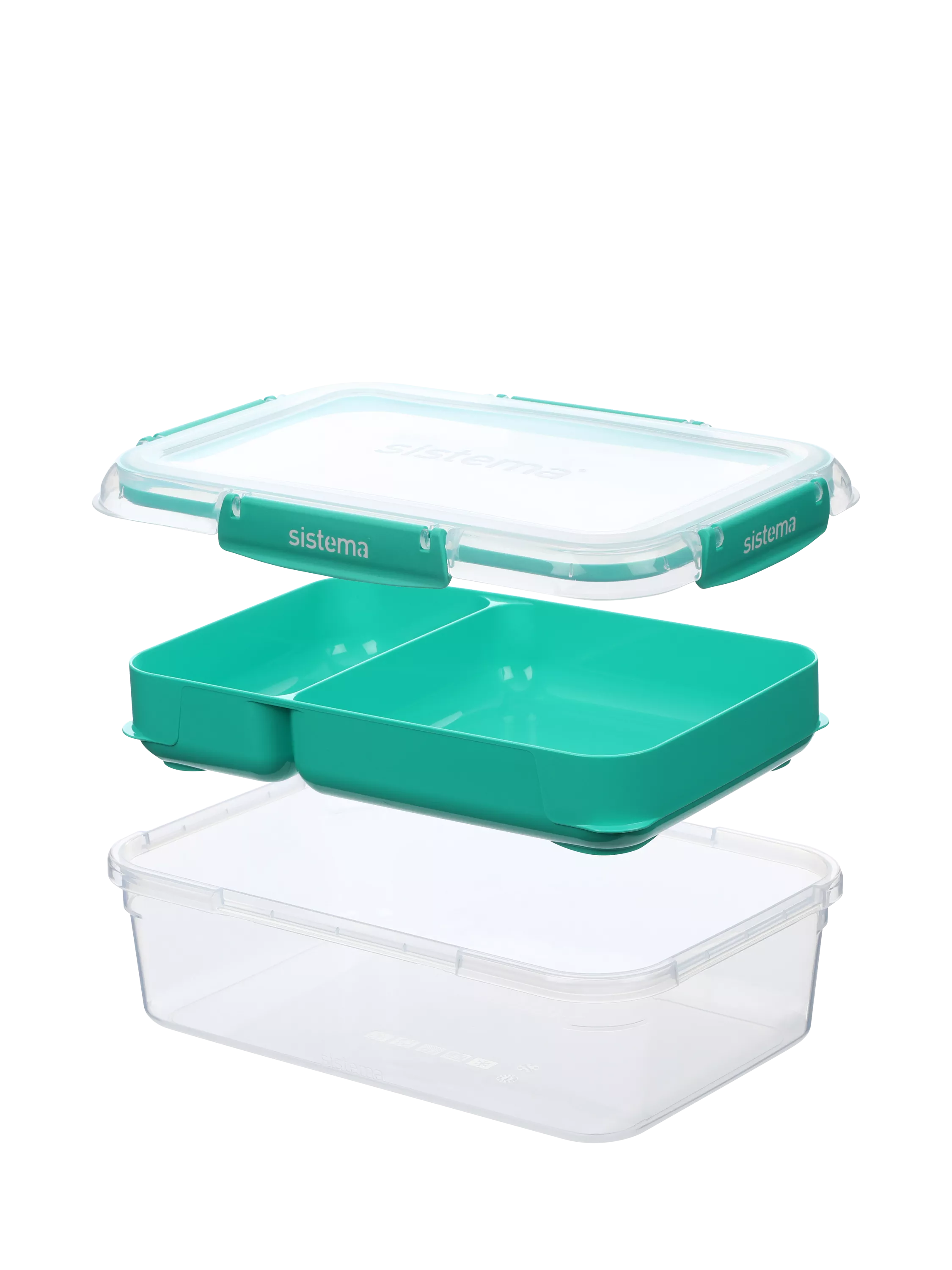 From the Sistema® TO GO™ Stax™ range, this leak-proof Lunch & Snack Container has a secure lid and a two-compartment tray. The fully leak-proof and airtight lid means you can take your food to work, school or anywhere else without worrying about it leaking in your bag.