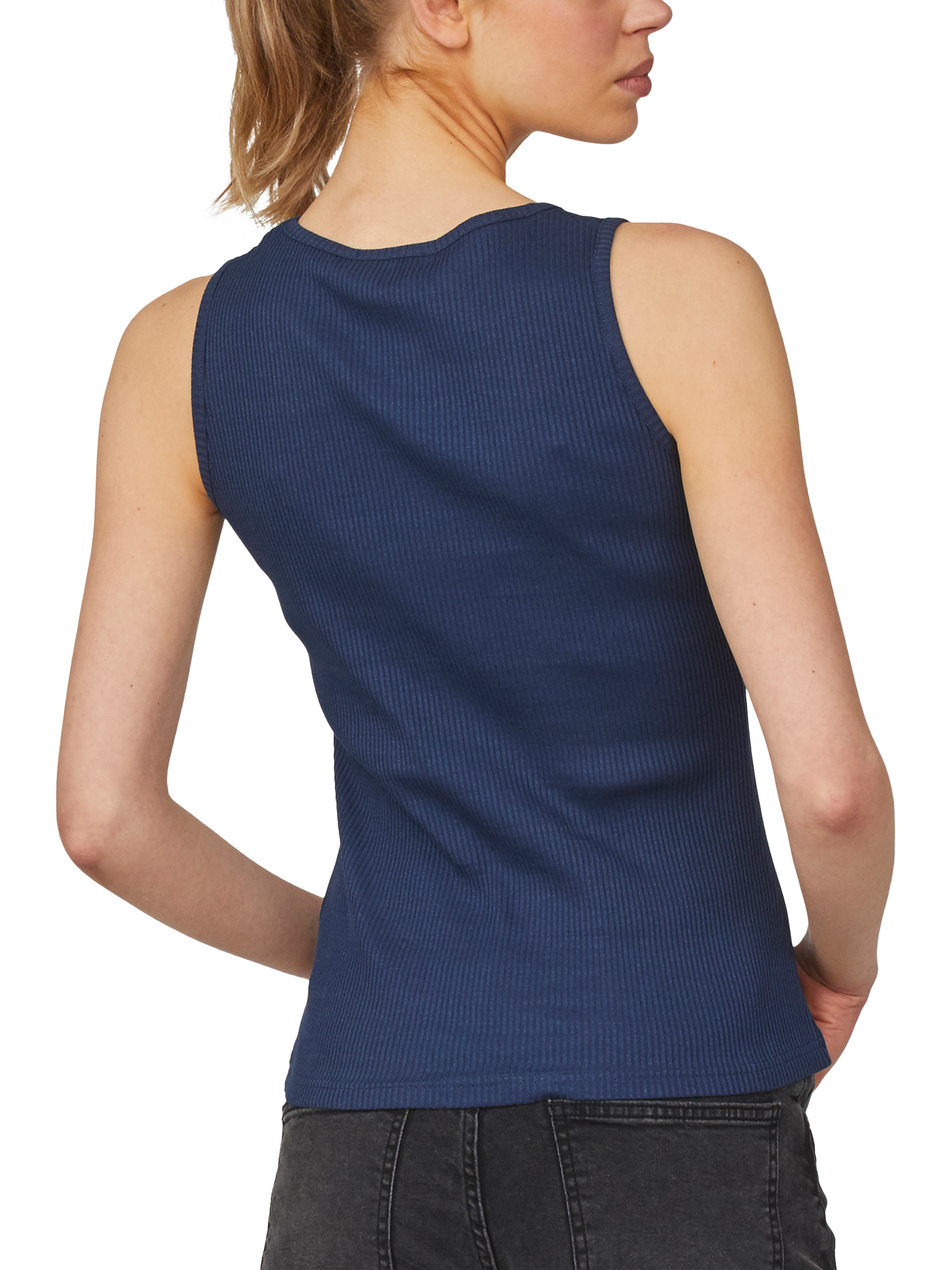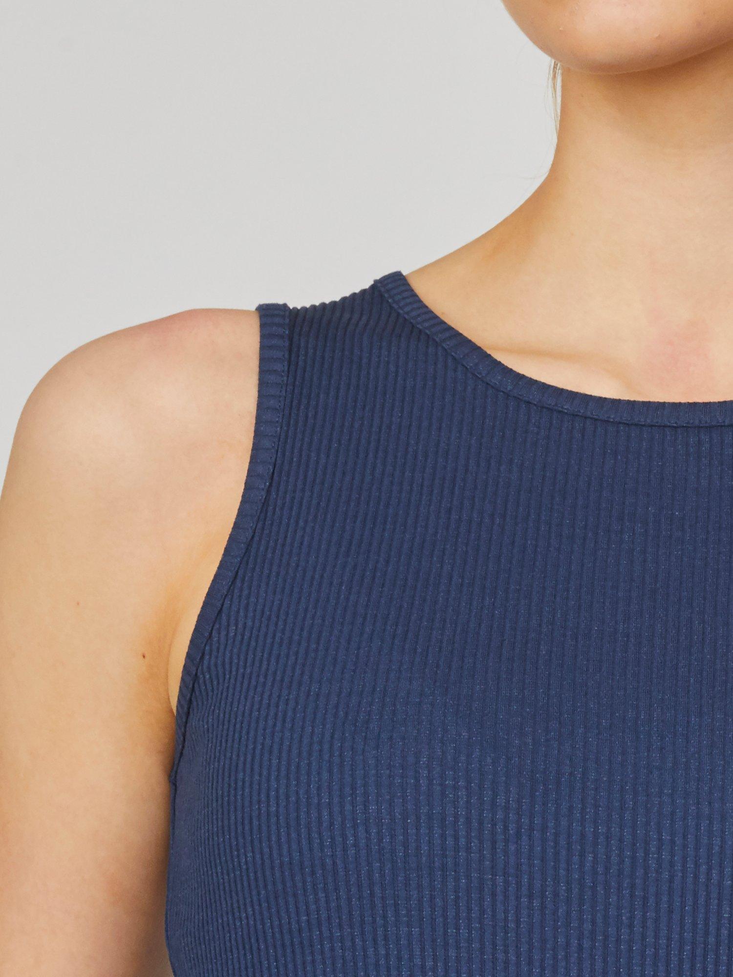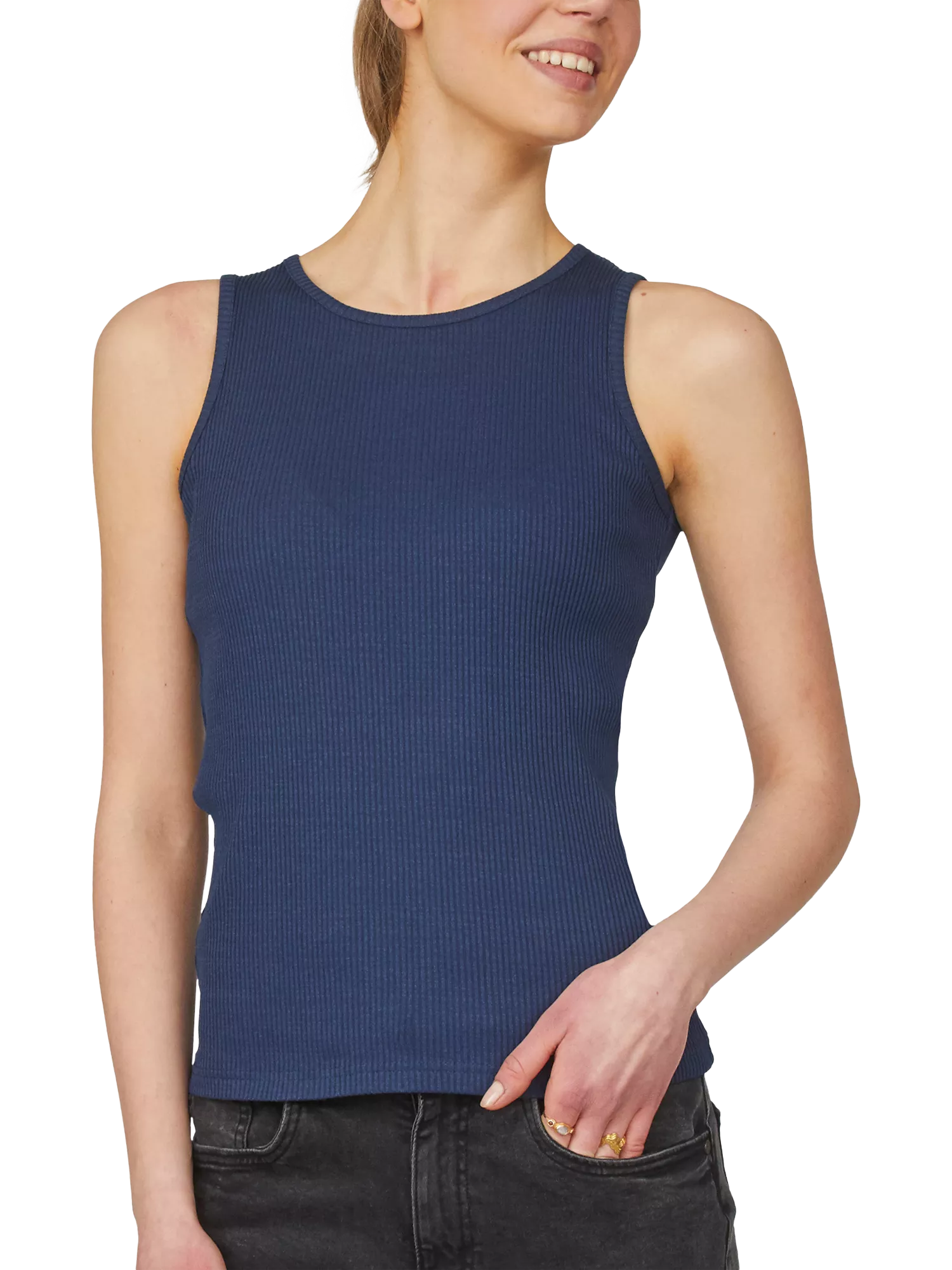 The Eike is a solid coloured top with a slim fit. It's a ribbed tank top with wide straps.