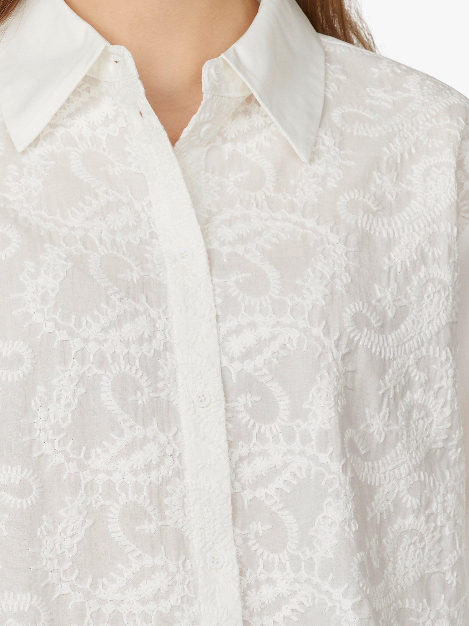 Structured with a collar and long sleeves, it is light and breathable in cotton and is an easy daytime option.