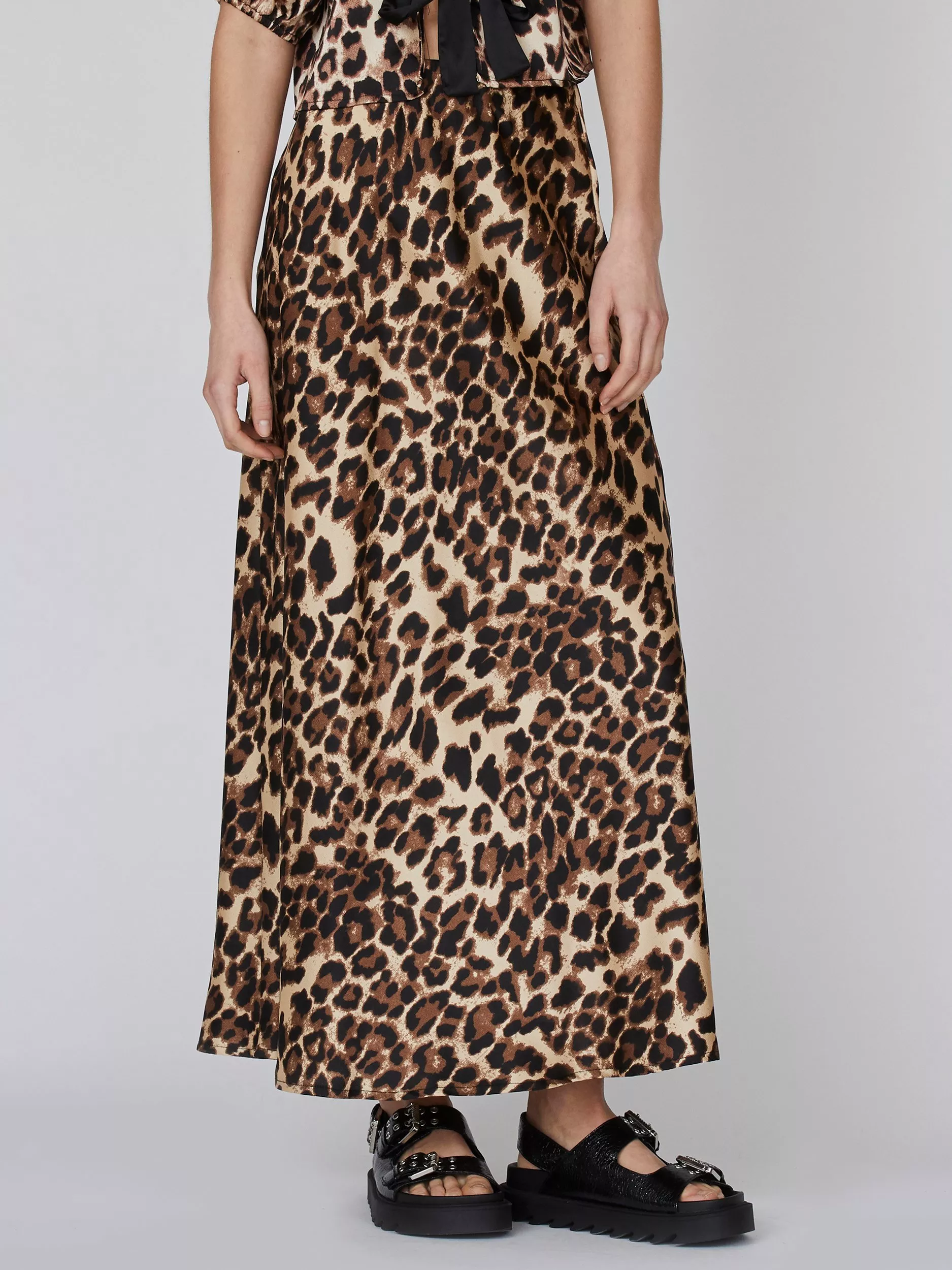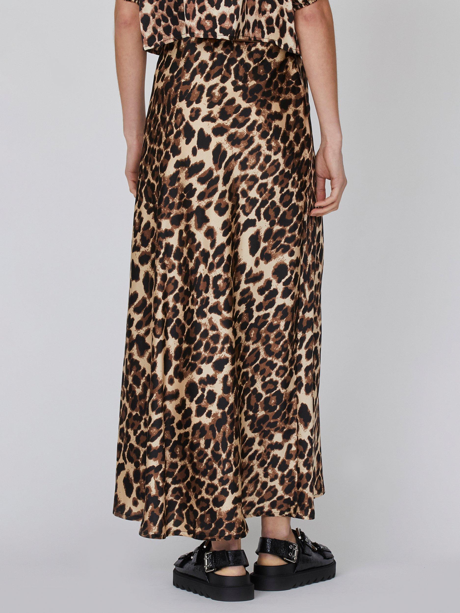 Gewo is a long skirt with a trendy leopard print. The skirt has an elastic in the waist and is loose in the bottom.