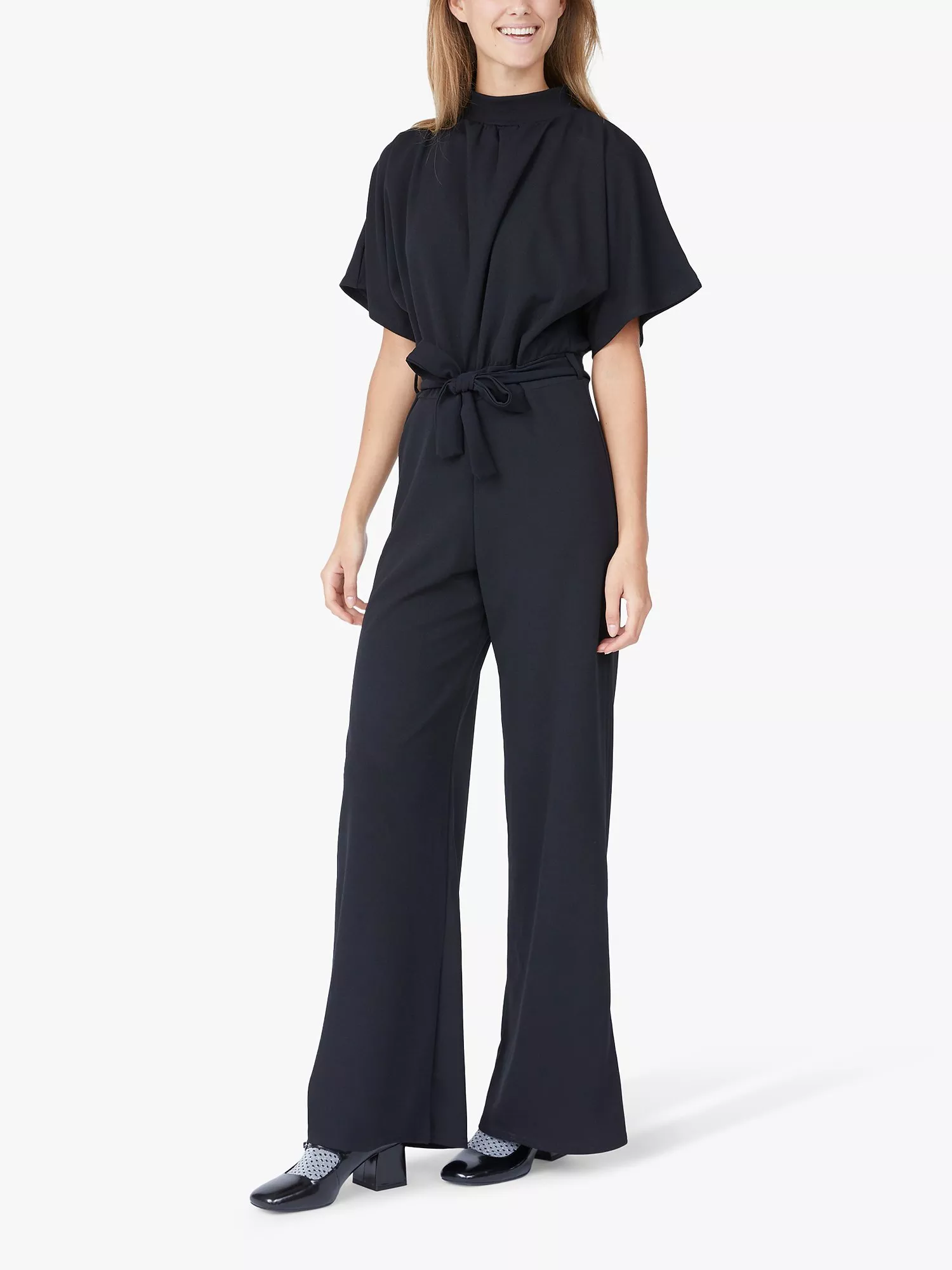 Conservatively carved with a high neckline, and short sleeves, this jumpsuit from Sisters Point is shaped to a billowy wide-leg silhouette and will keep you comfy with their featherweight fabrication.