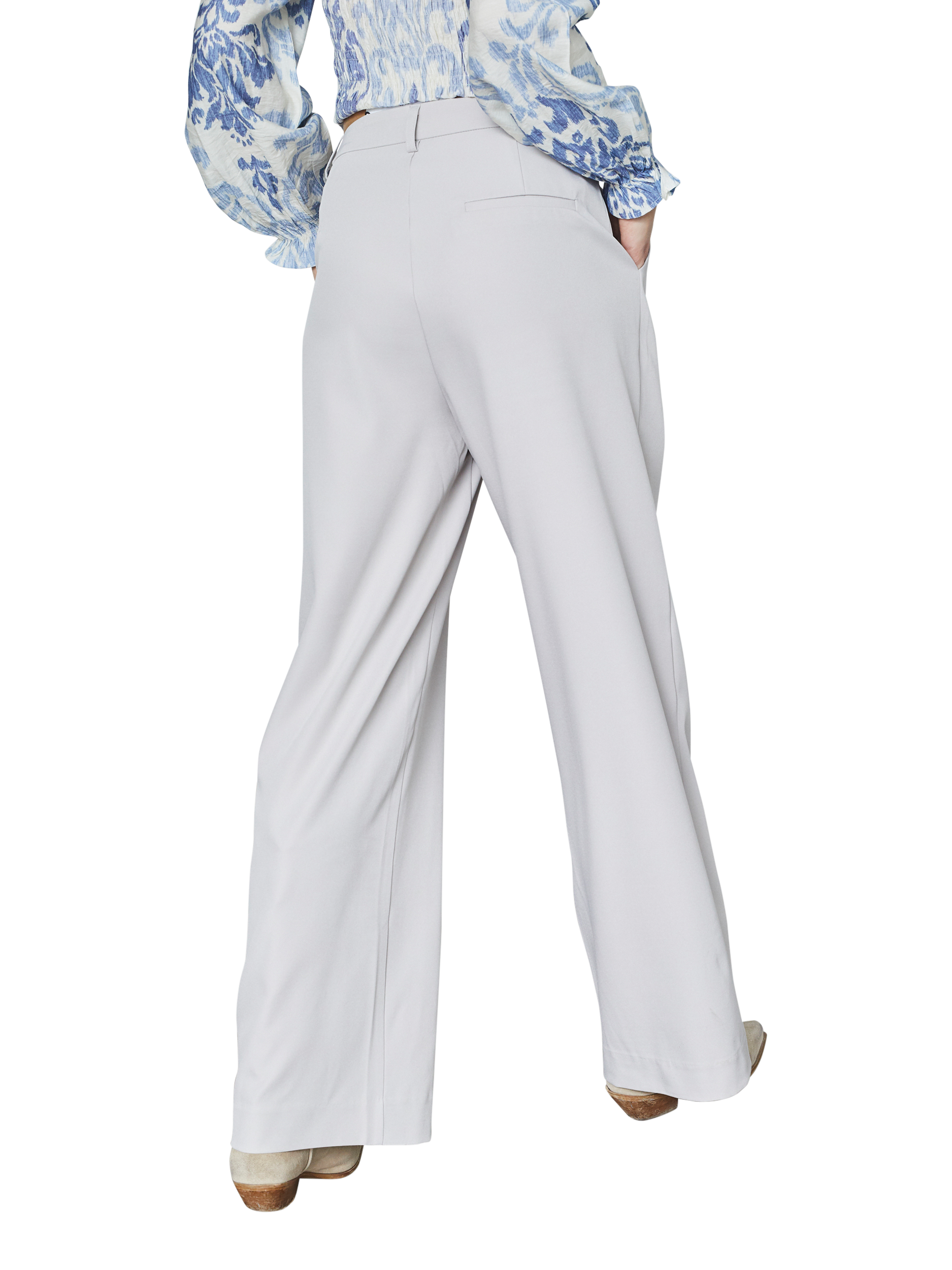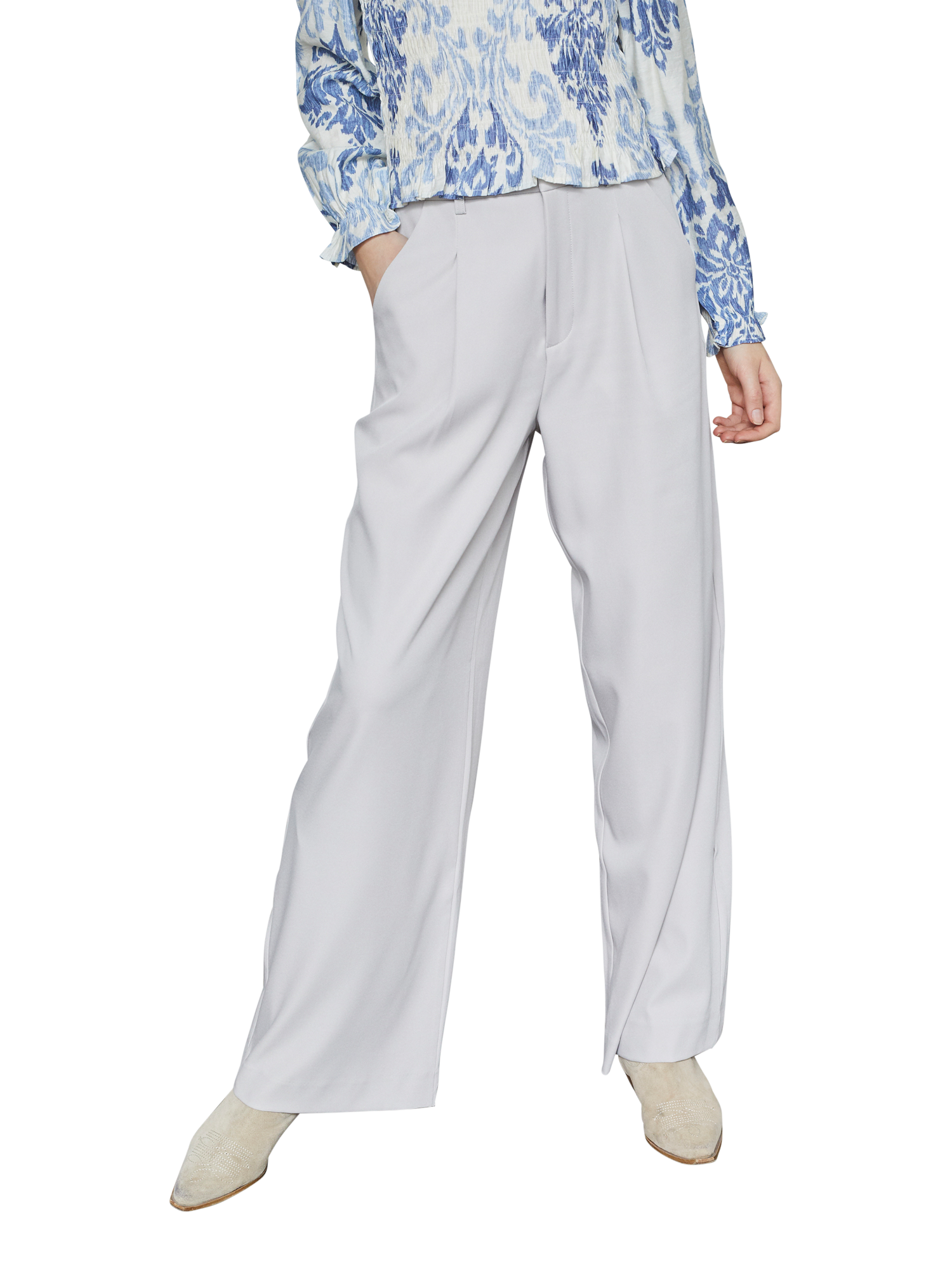 A pair of classic loose-fitting trousers with wide legs. The trousers have a regular fit at the waist.