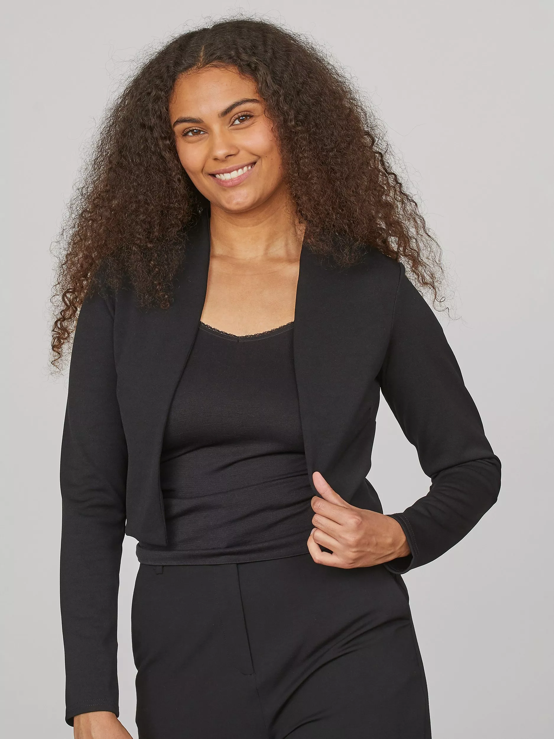 Ideal for layering over eveningwear, this bolero by Sisters Point flatters the figure with its cropped cut.