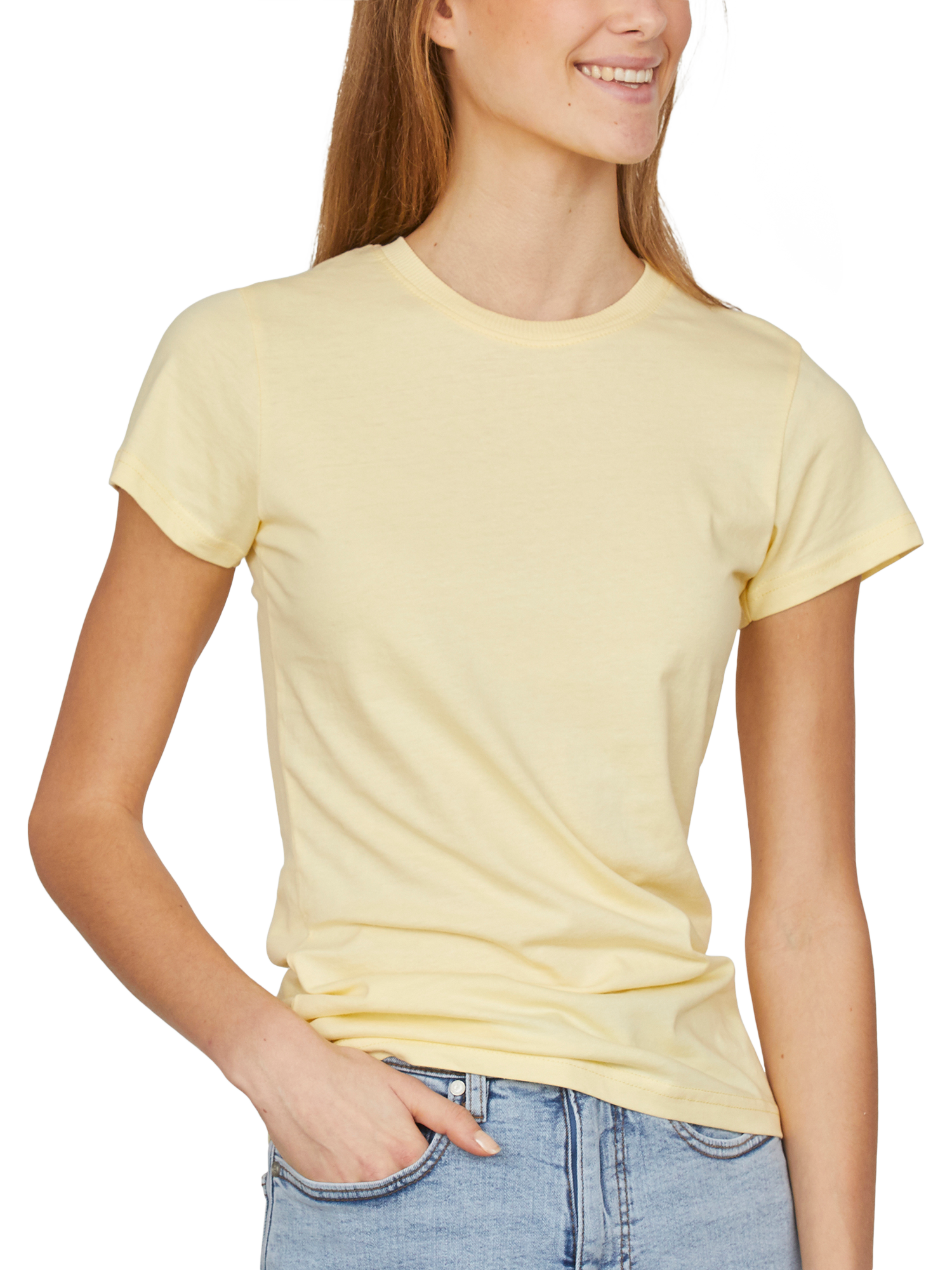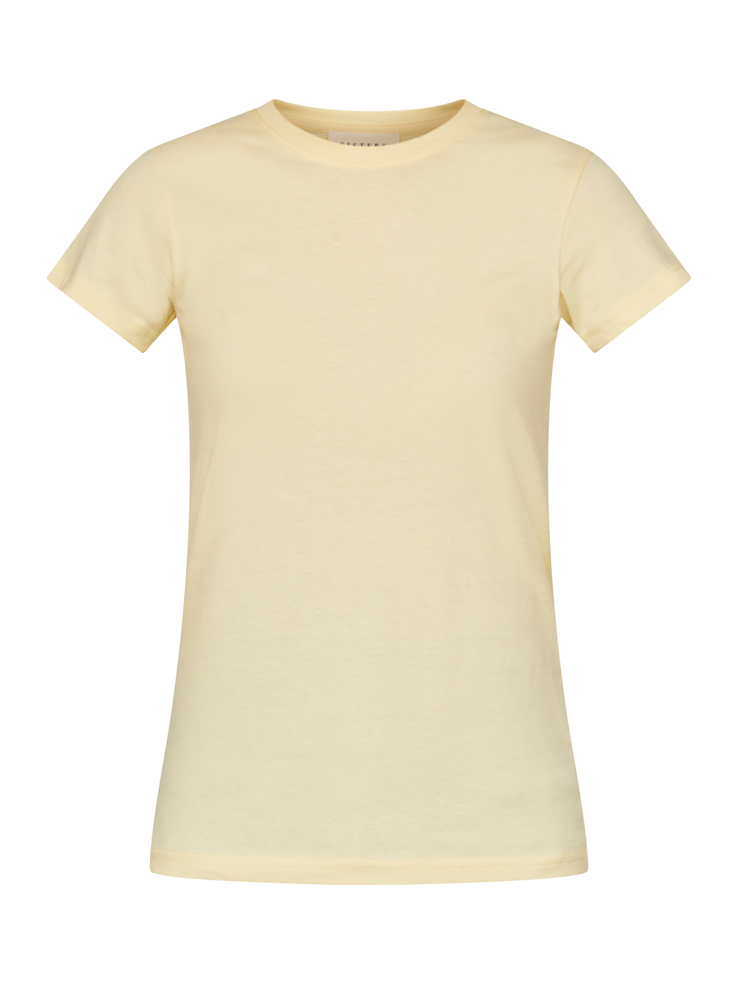 The Heda is a solid-coloured t-shirt with a feminine fit. The T-shirt has short sleeves and a classic round neckline.
