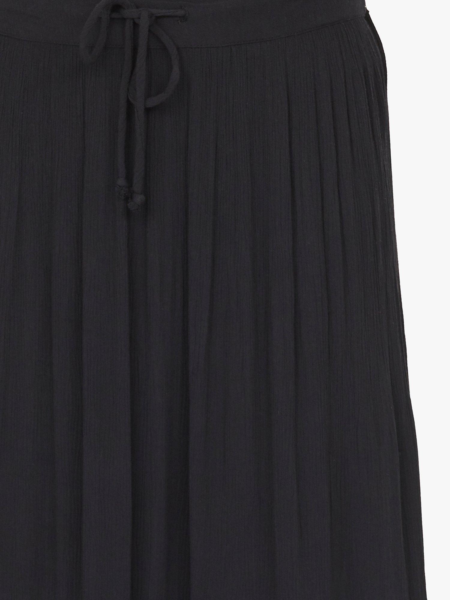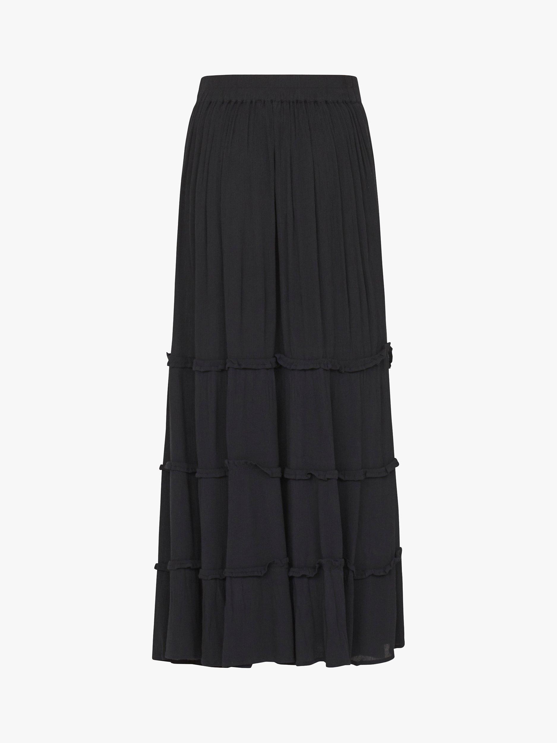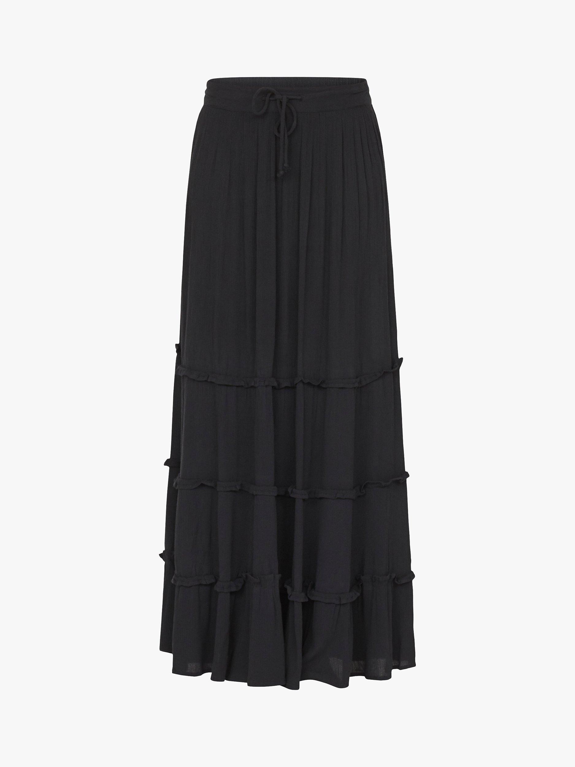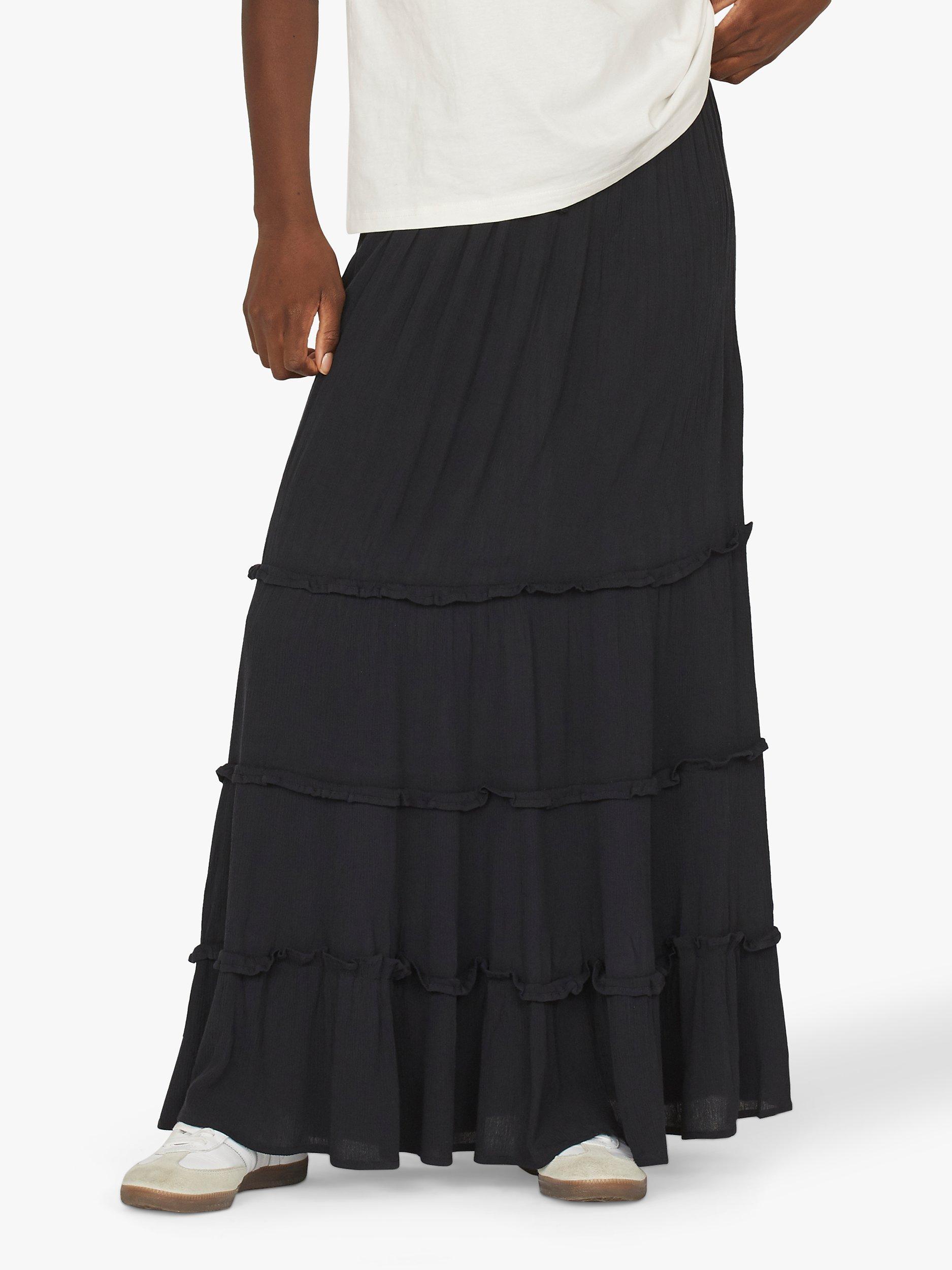 Inza is a long skirt with frills. The skirt has elastic at the waist and a comfortably loose fit.