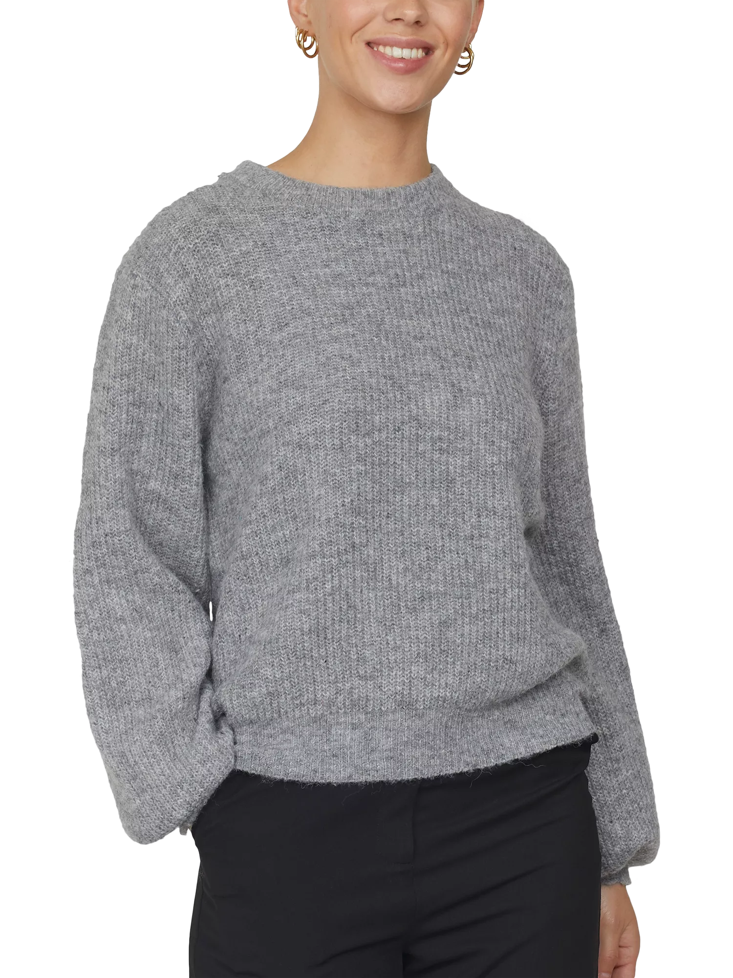 Lui is a plain knitted sweater with a round neck and ribbed edge.