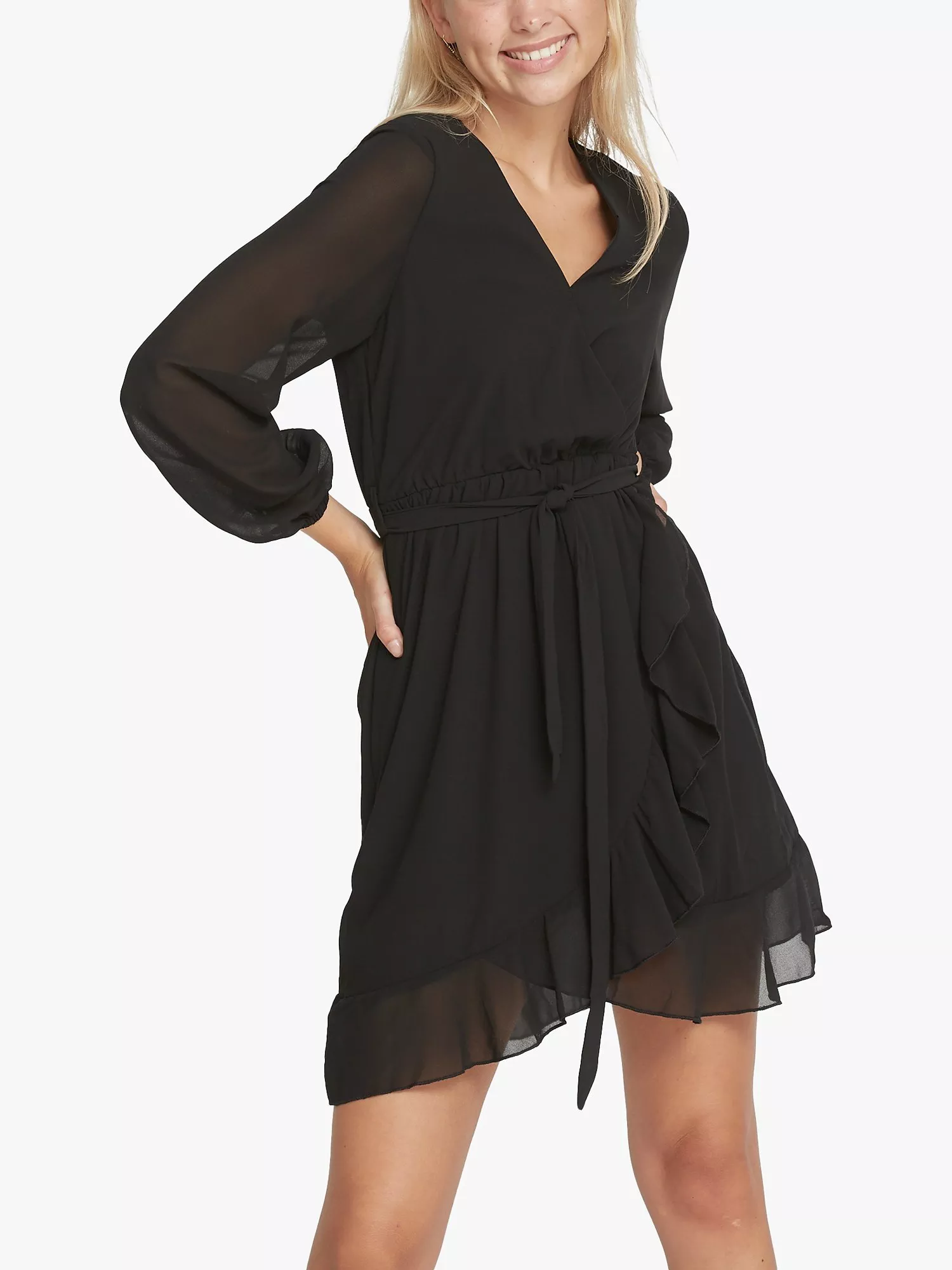 A tried-and-true favourite, this thigh-grazing dress from Sisters Point comes made in a durable, synthetic fabric. With a fuss-free but smart v-neckline and full-length sleeves, this style is the epitome of sheer minimalism.