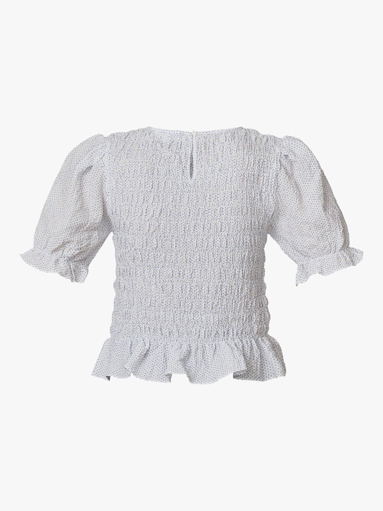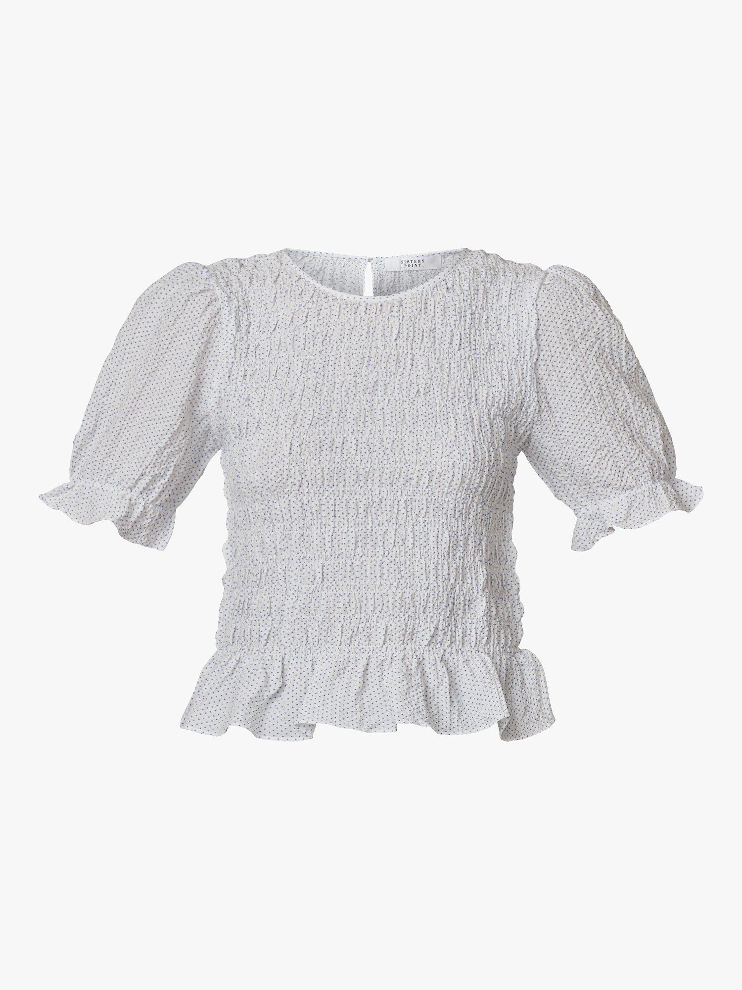 Bringing a neat addition to your wardrobe, this blouse from Sisters Point is cloaked in mesmerising spots. Cut with a round neckline, short puff sleeves and smocking around the stomach and back, it is ideal for relaxed daytime wear.