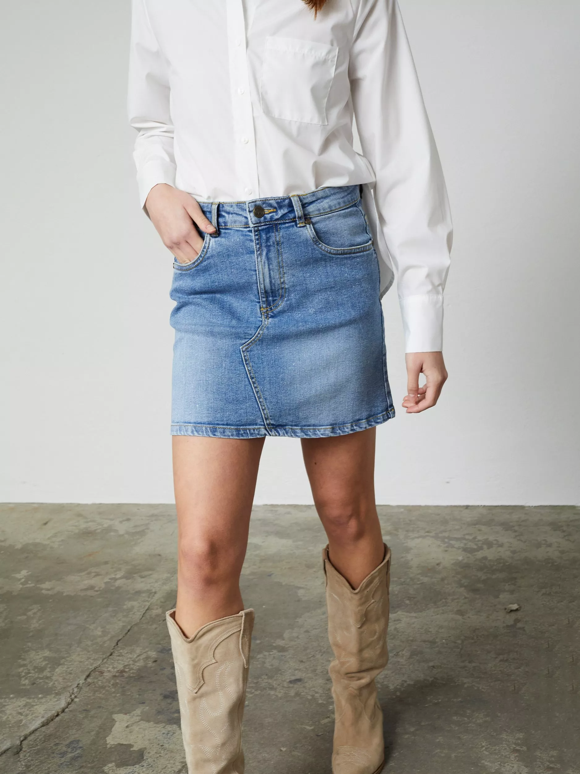 Sisters PointOnea Denim Mini Skirt, Mid Blue