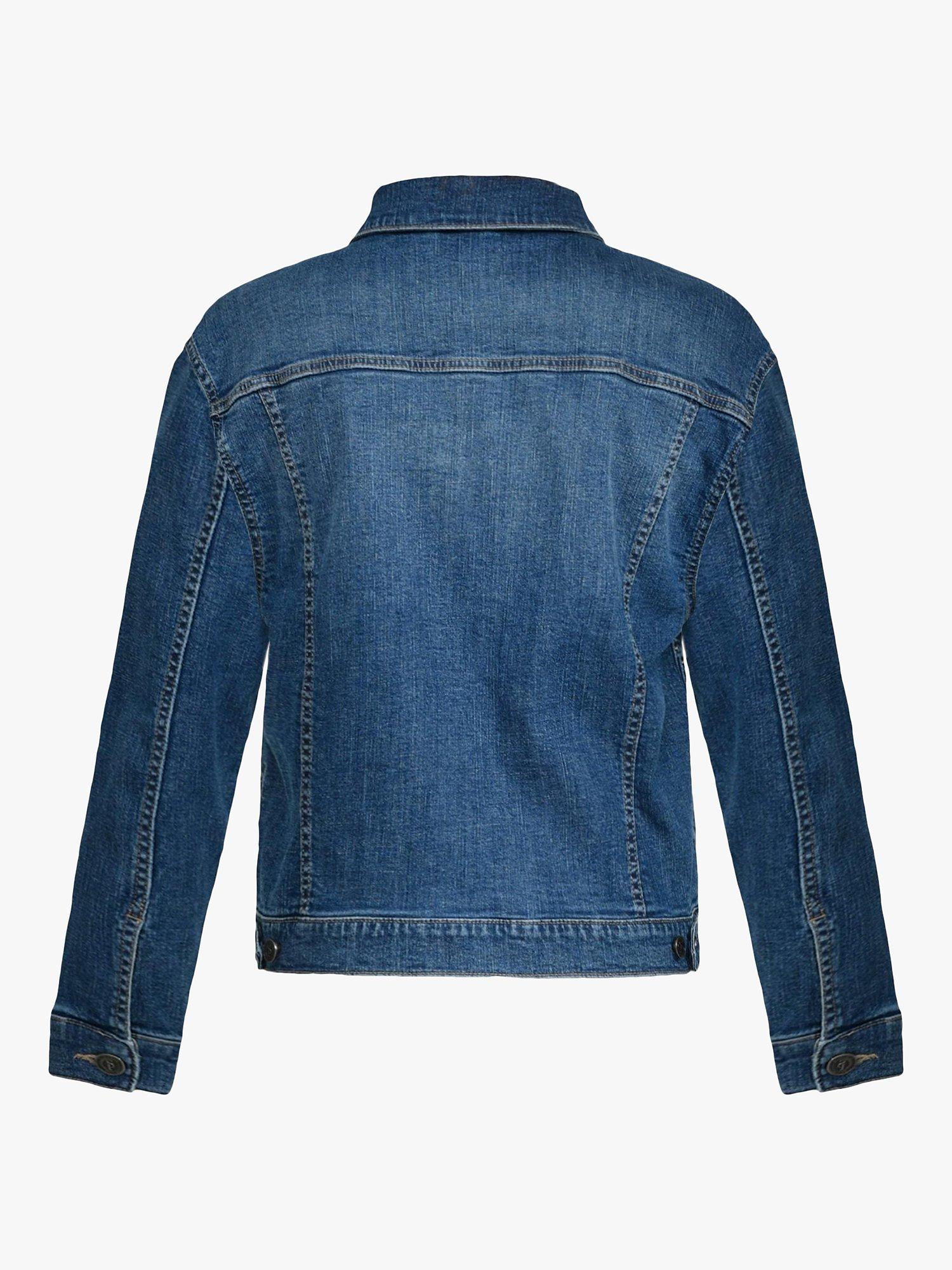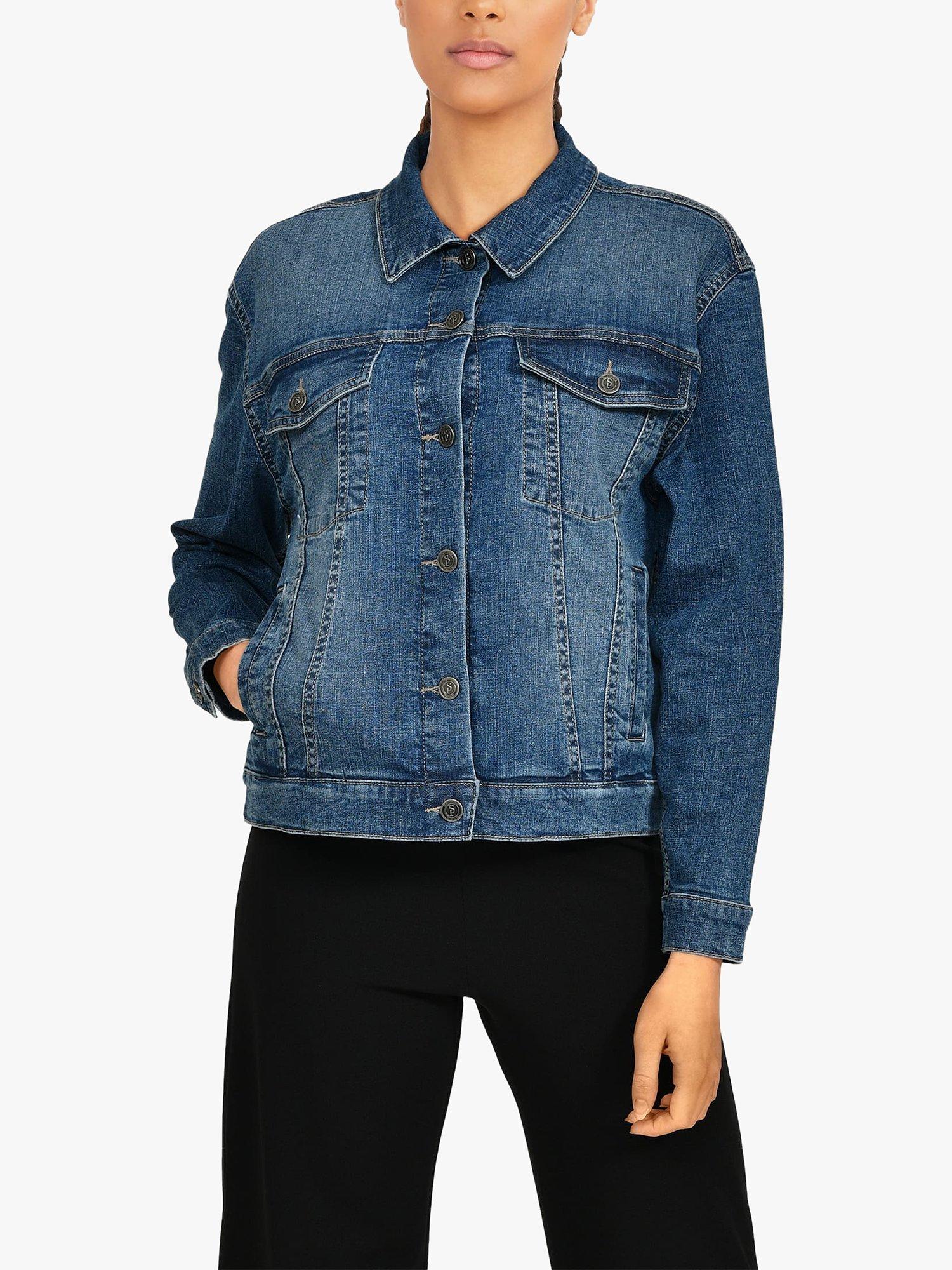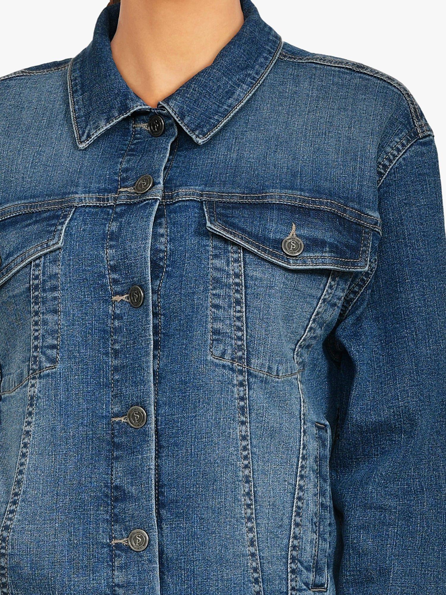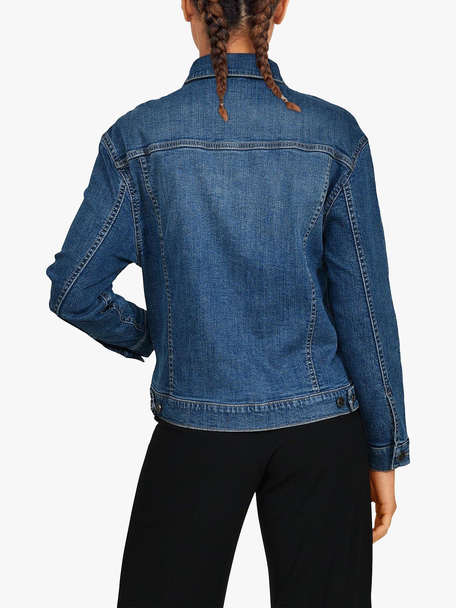 Framed with a collar neckline, it is fashioned from denim for an off-duty staple.