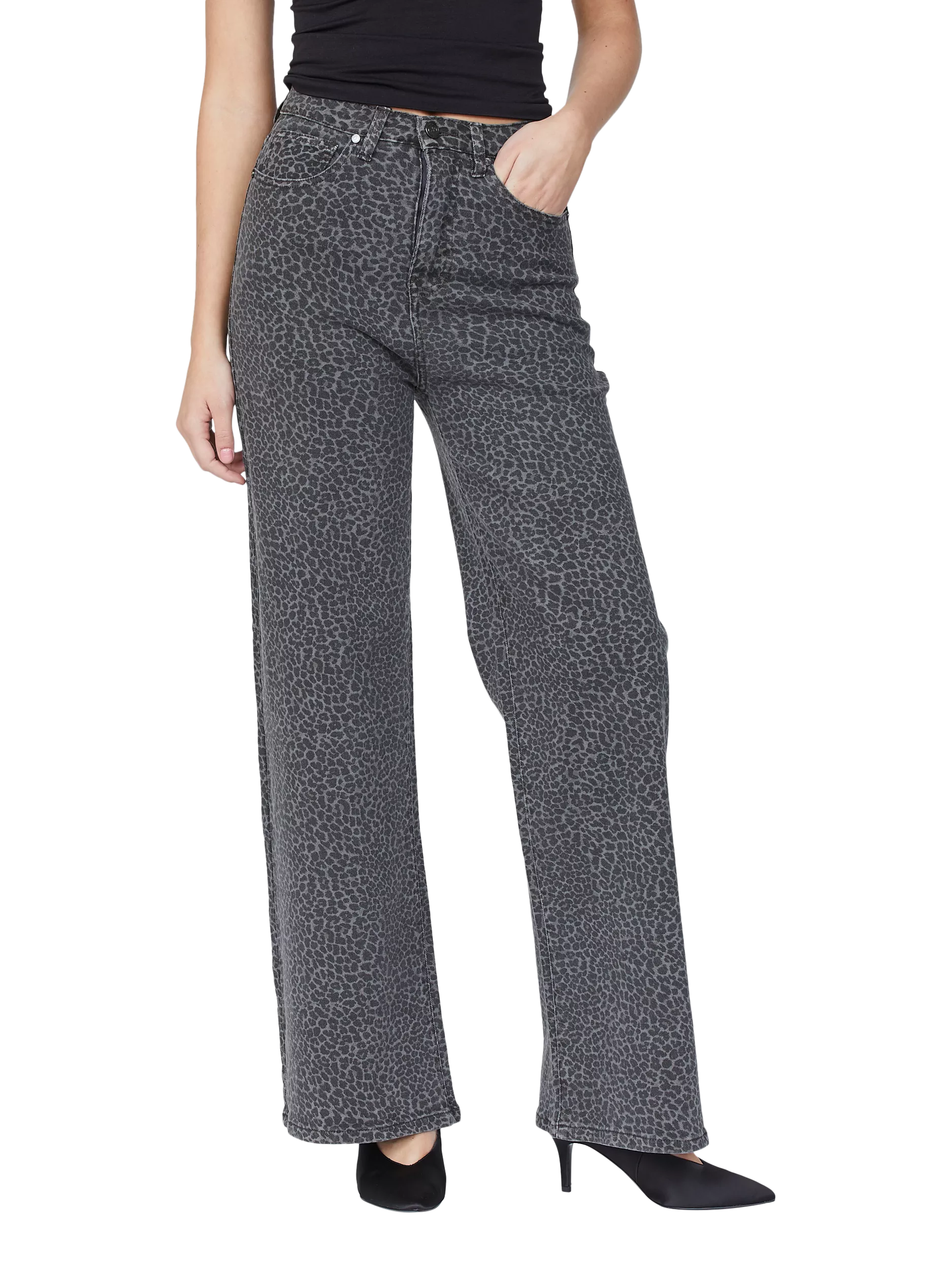 The Owi is a cool pair of jeans in a trendy Leo print. It has wide legs and a high waist. The pant has five pockets, belt loops and zipper closure at the front.