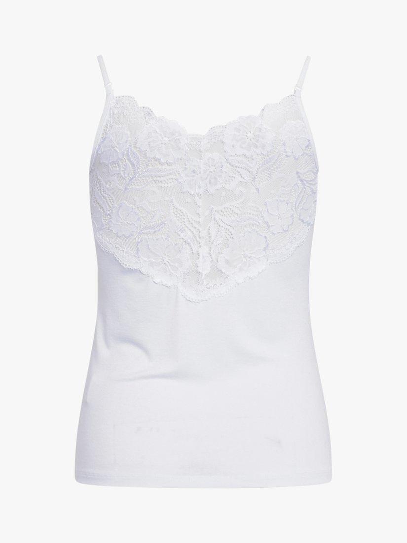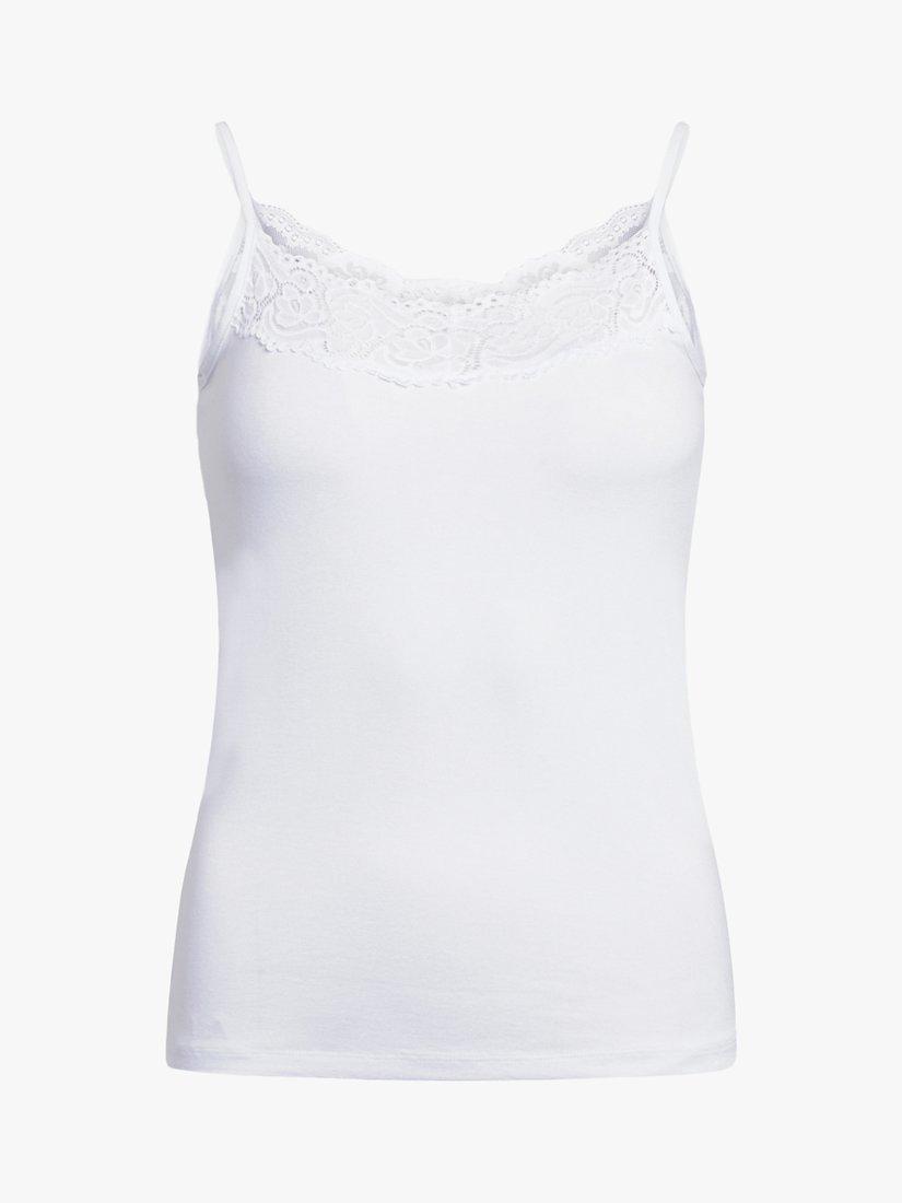 Slim fit vest from Sisters Point with spaghetti straps and lace trim detail, front and back. Made of a soft fabric with a touch of stretch for comfortable wear.
