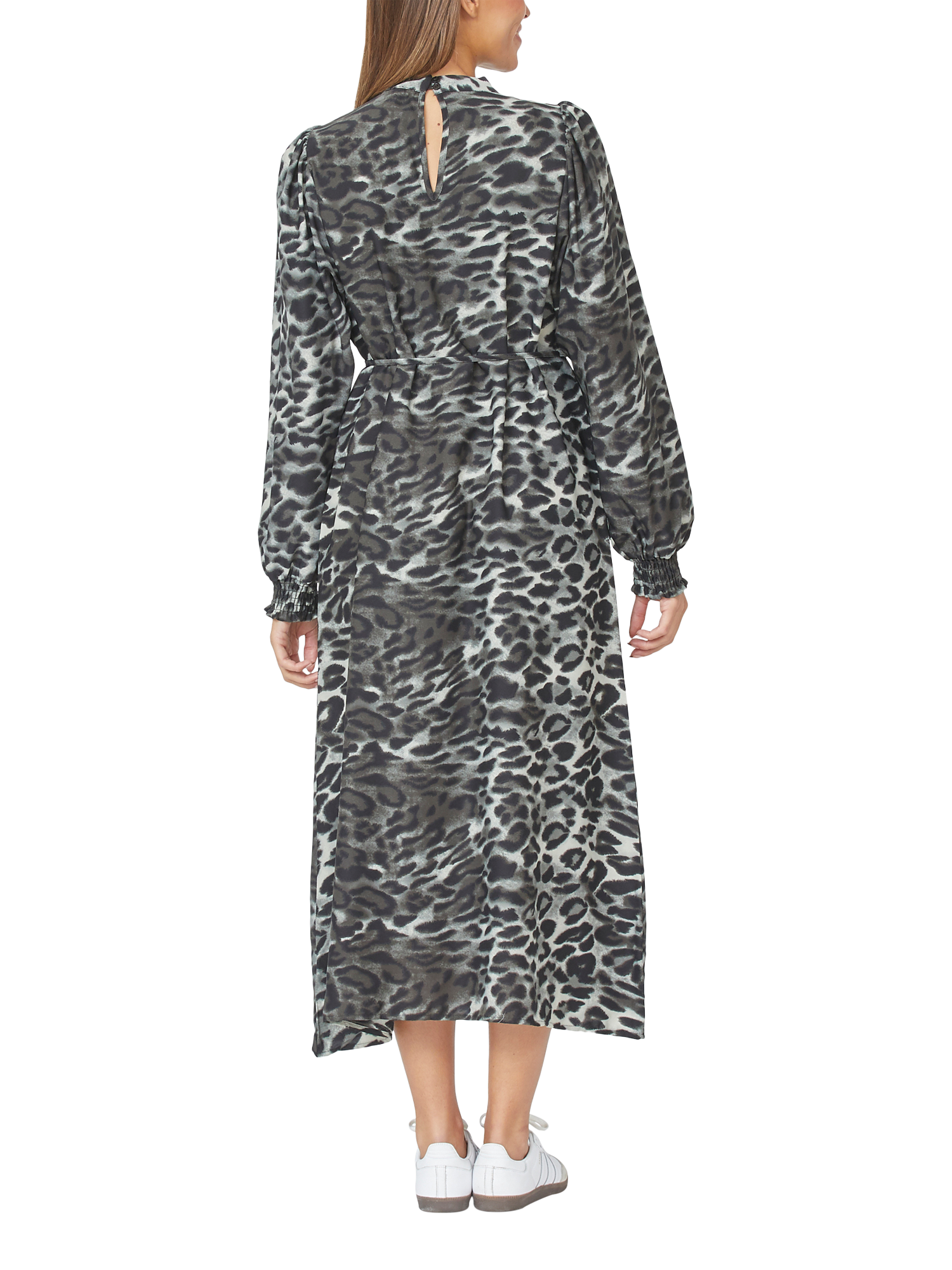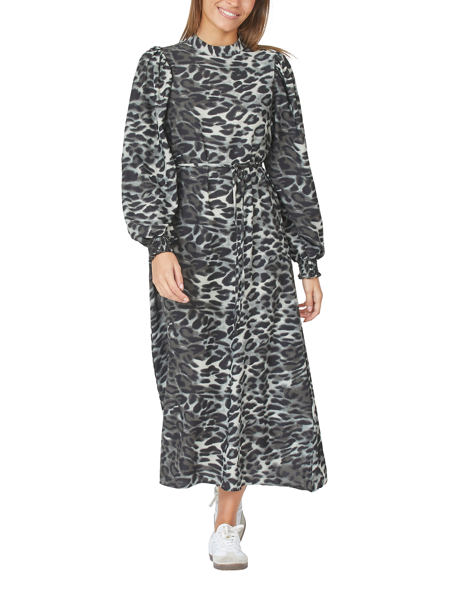The Ventia is a long elegant dress with leopard print. The dress has long sleeves and is equipped with a belt band at the waist. Perfect for everyday use and festive occasions.