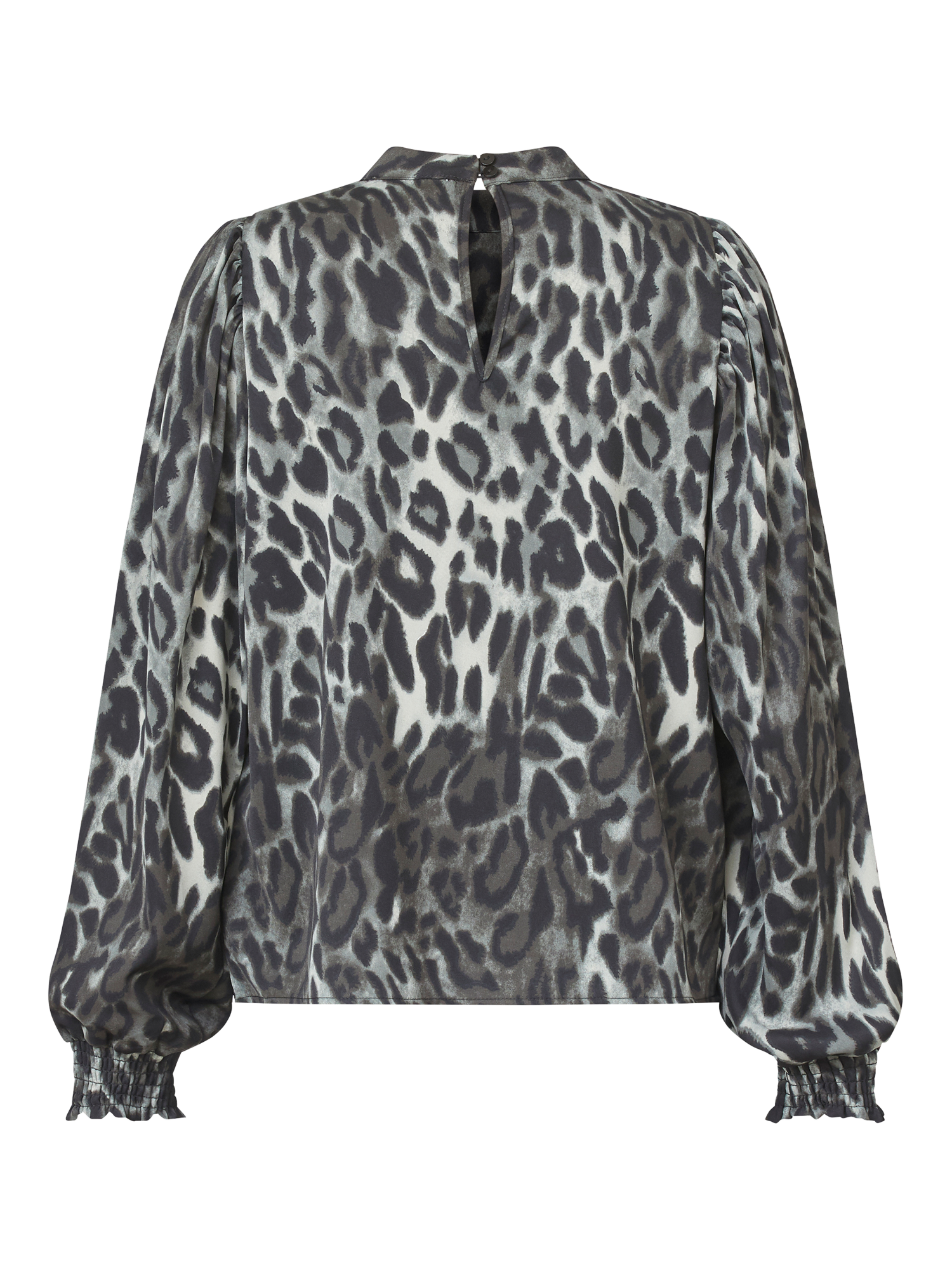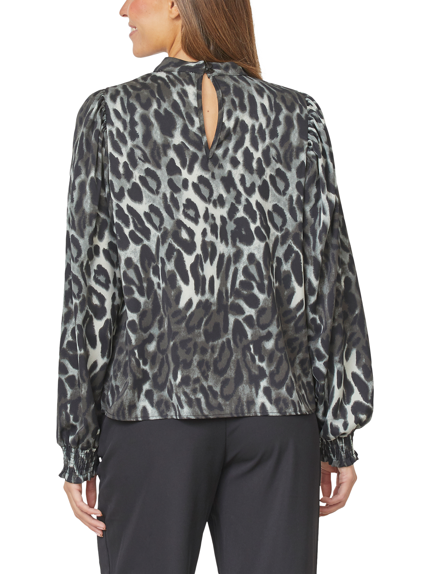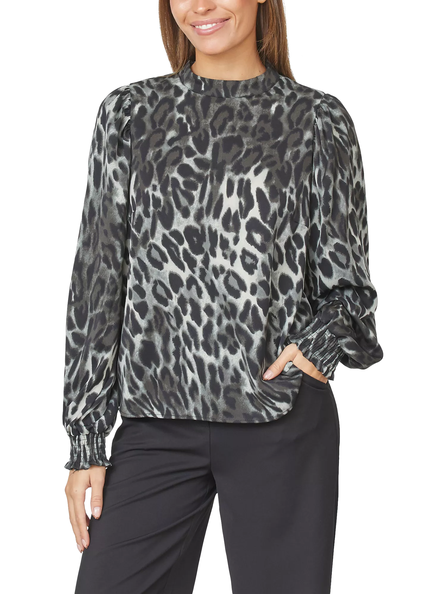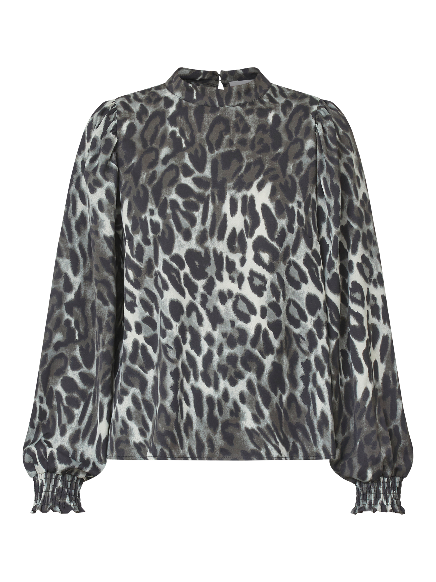 The Ventia is a long-sleeved leopard blouse, with a high neckline and elastic cuffs. The blouse is airy and elegant.