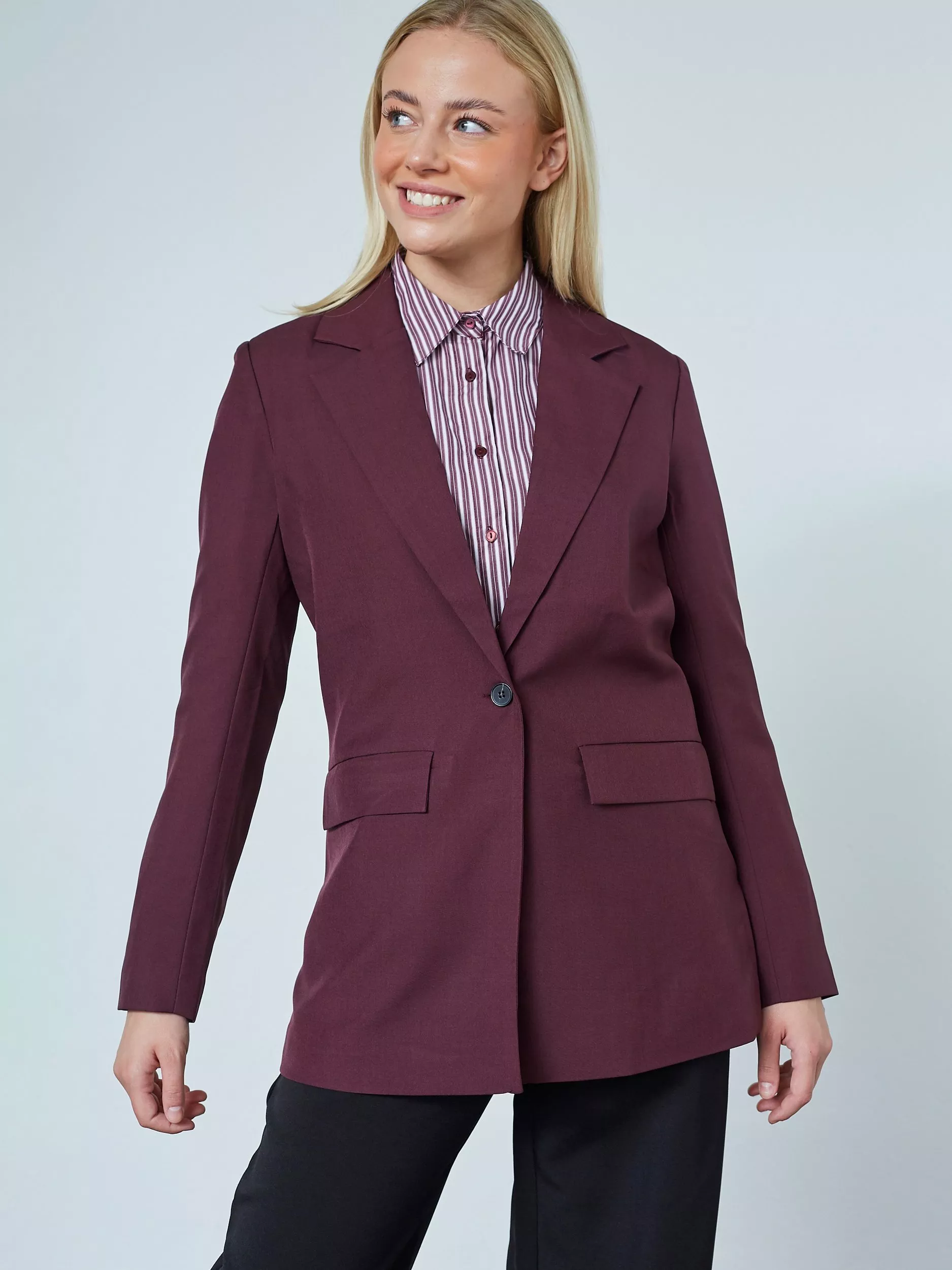 Sisters PointViksa Single Button Long Sleeve Blazer, Dark Bordeaux