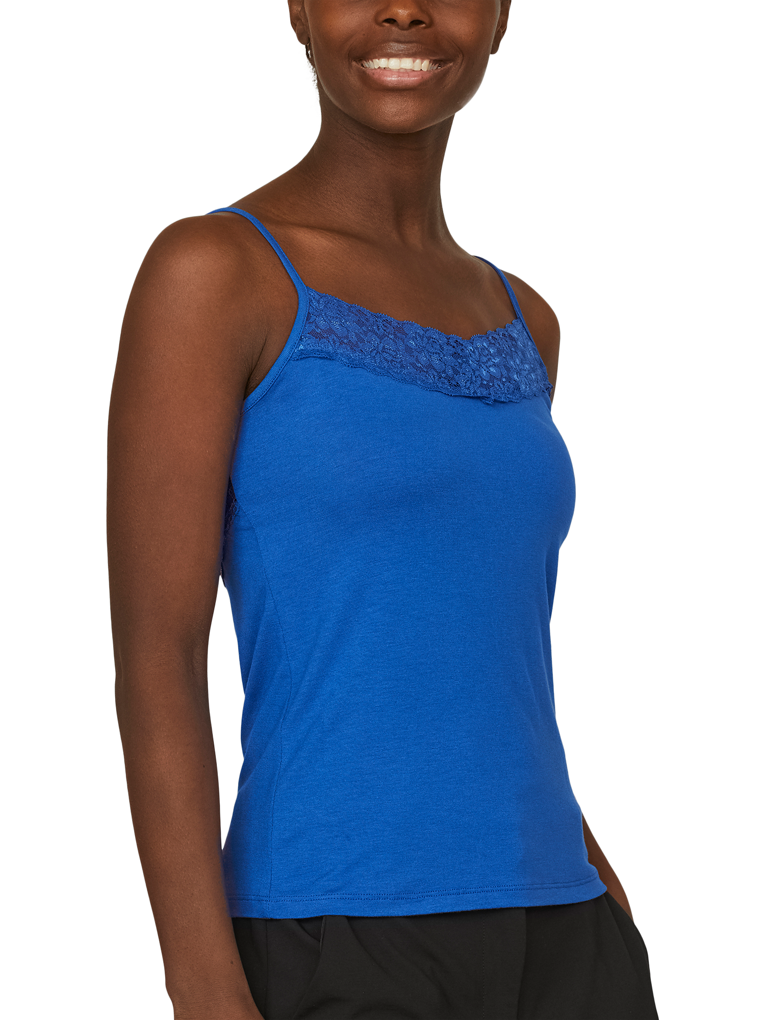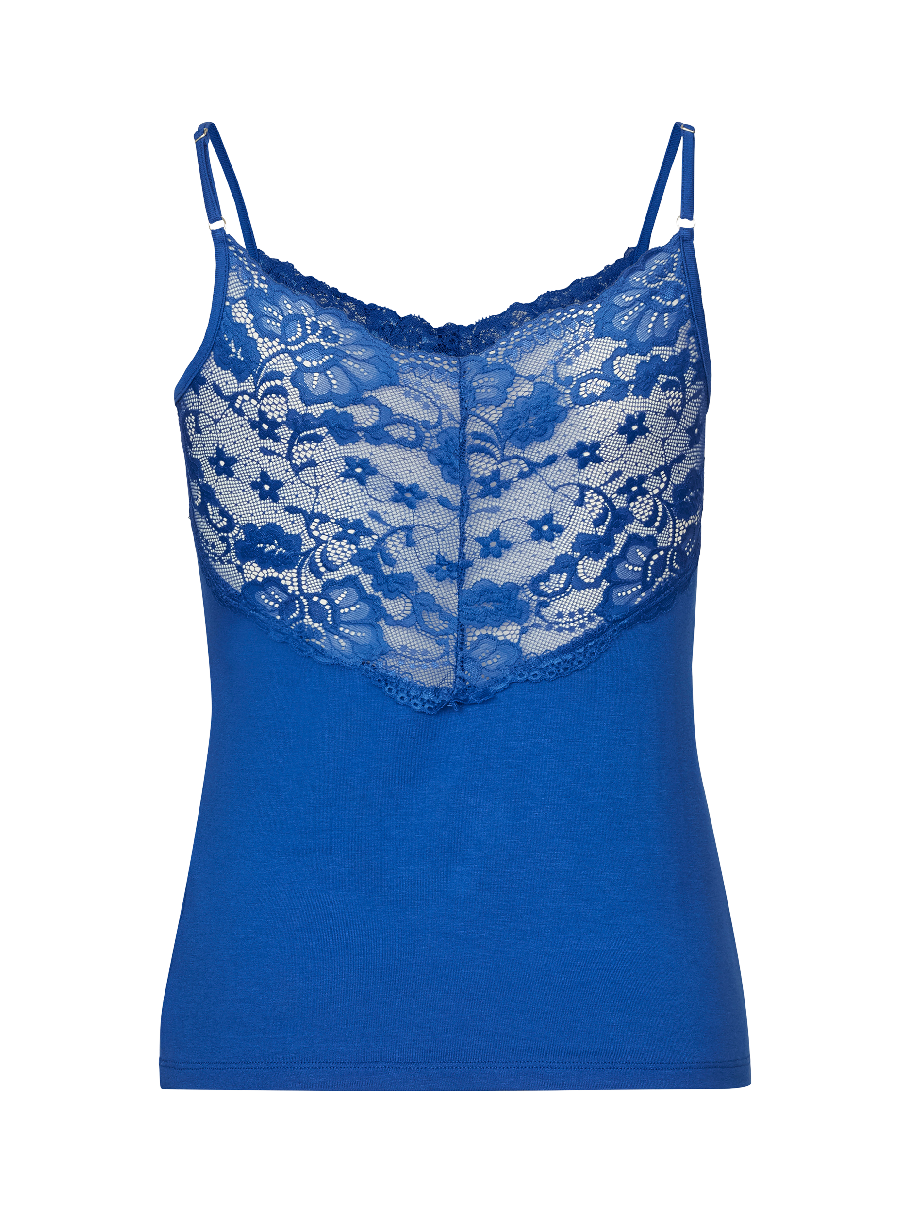 The Vumi is a basic top with a slim fit and lace detail at the upper part of the front and back.