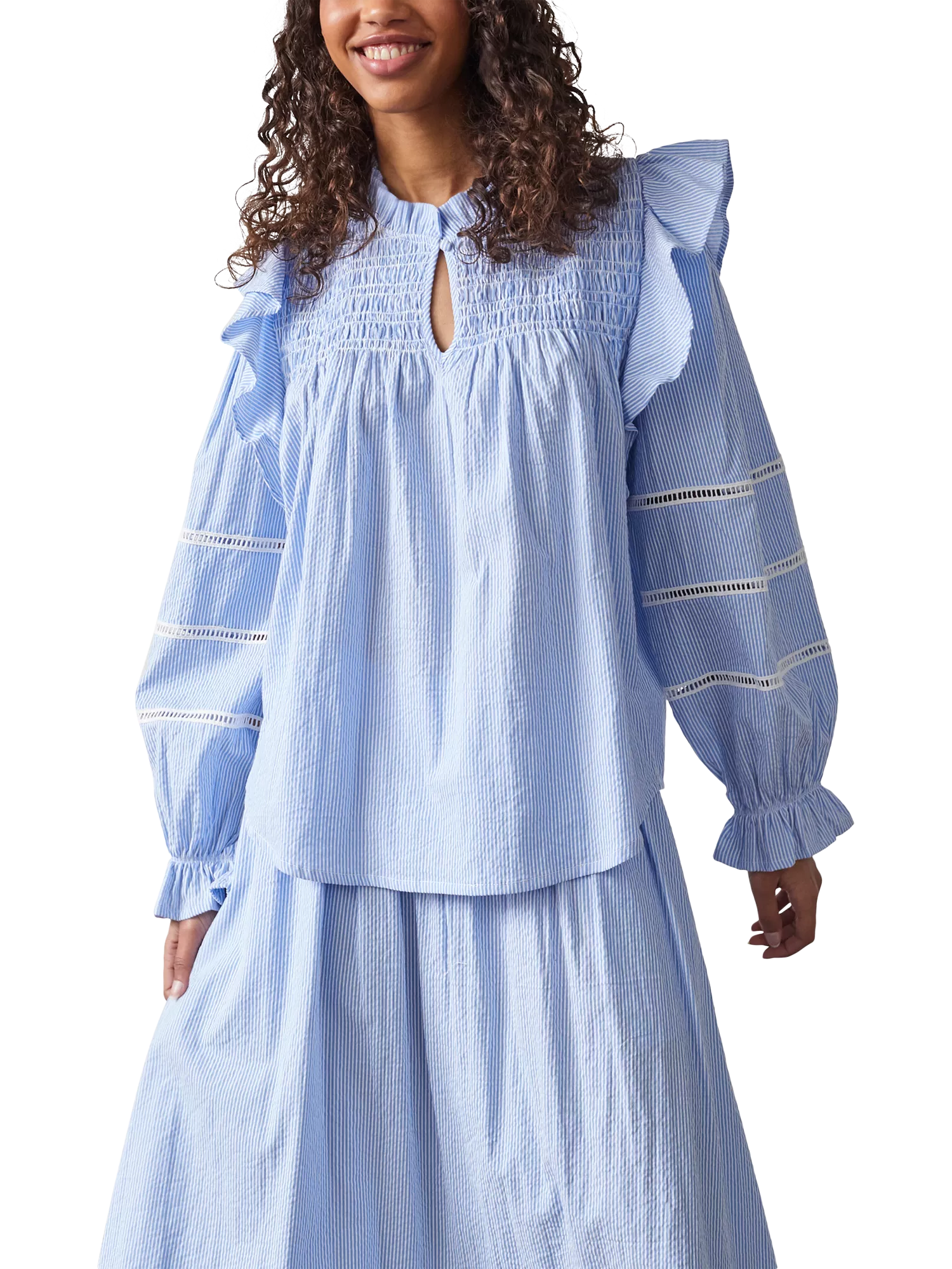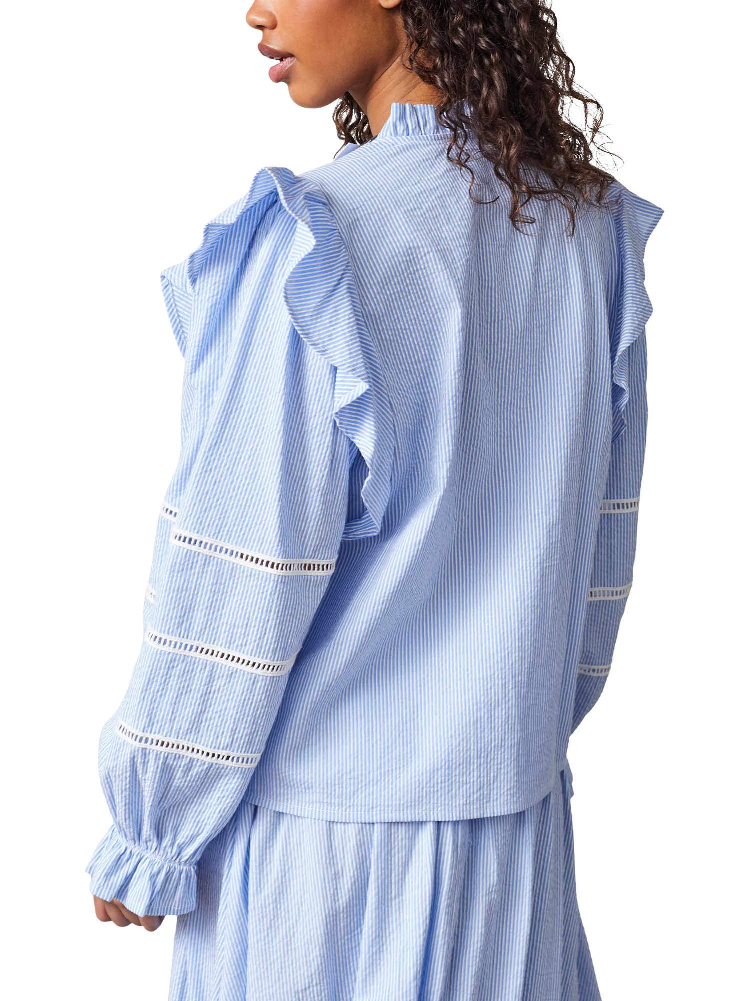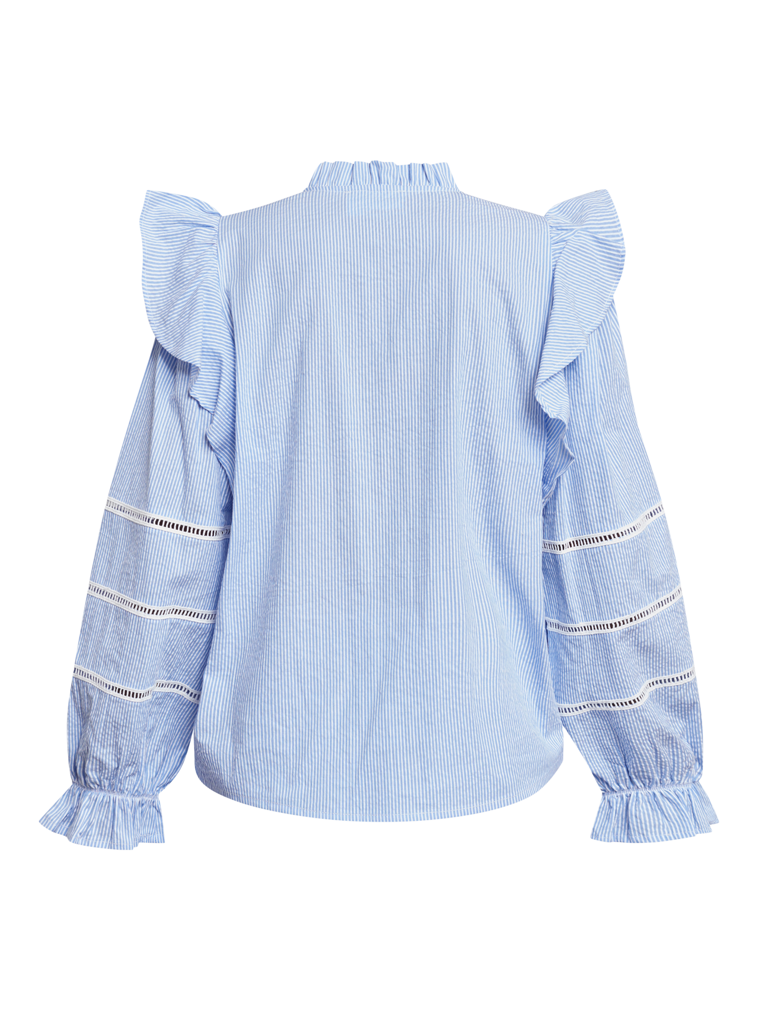 The Vysla is a chic cotton blouse with delicate stripes, high neck and detailed sleeves, suited for both casual and semi-formal occasions. The perfect way to refresh your wardrobe this season.