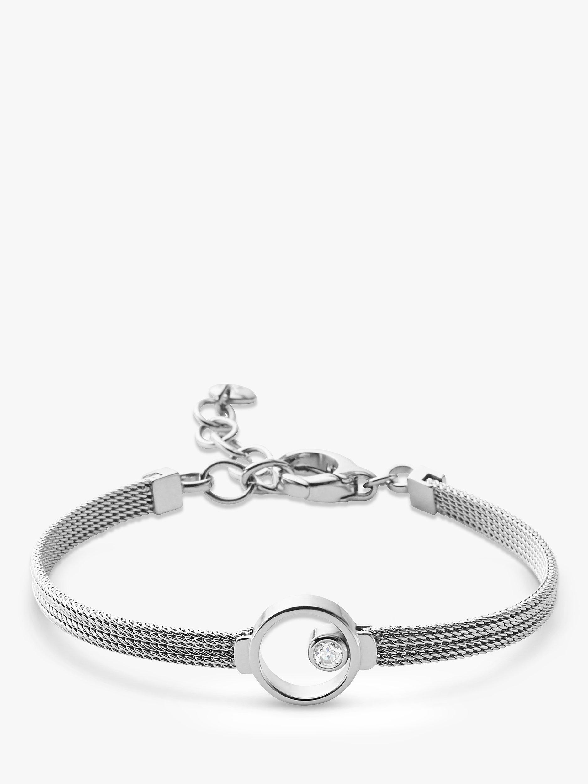 A single crystal accentuates the circle charm of this bracelet. The multi-chain bracelet can be adjusted at the lobster clasp.