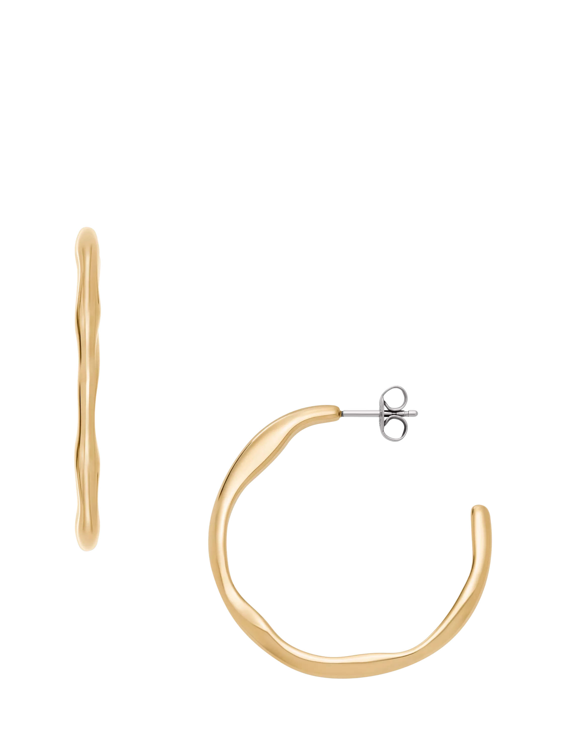 Refined simplicity, elevated. These distinctive stainless steel hoop earrings from the Moderne Stak collection strike the perfect balance between modern and timeless. Gold-tone metal hoops in a versatile size with a polished finish, crafted with precision.