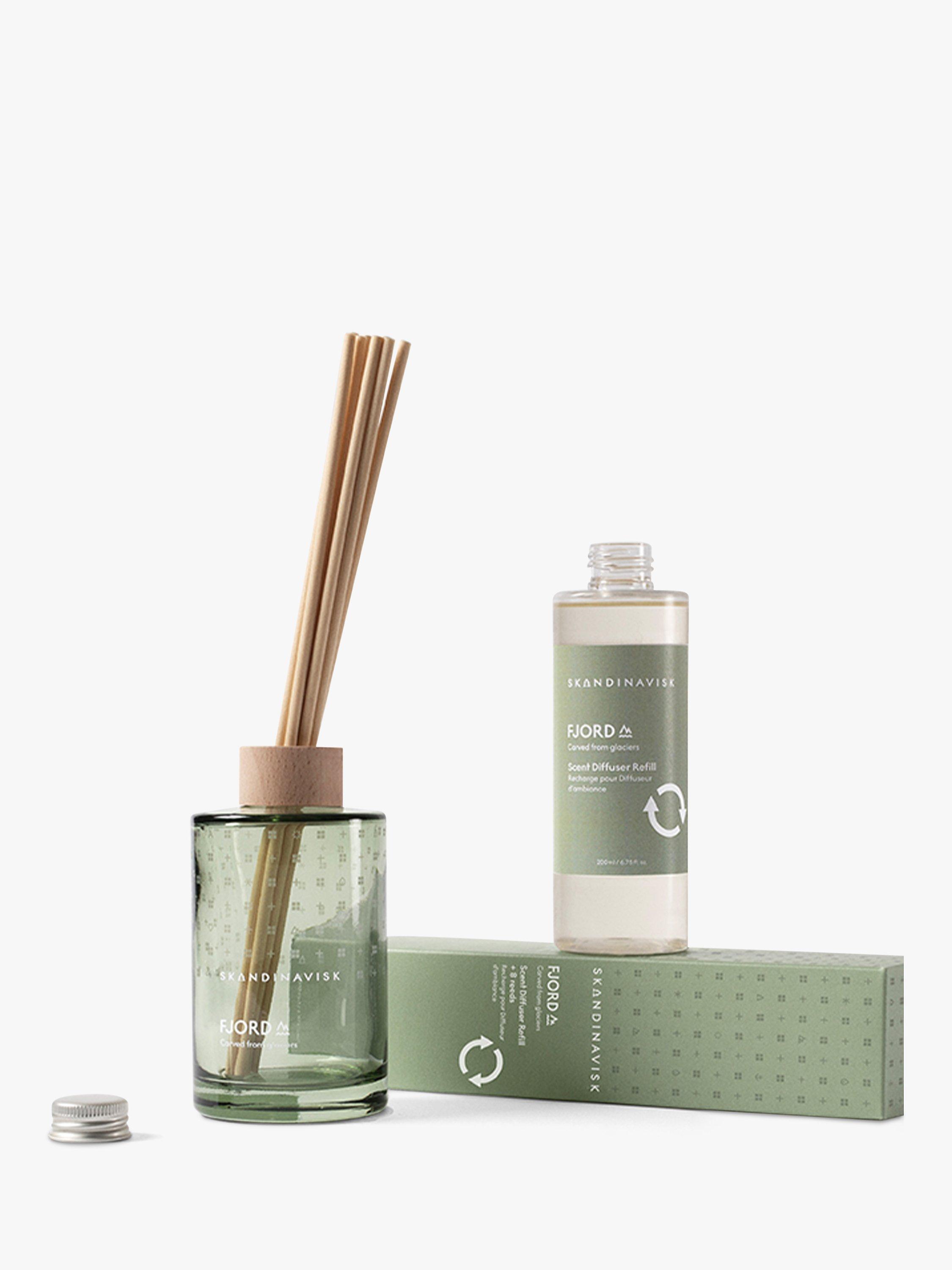 - DIFFUSER CARE. To use your refill simply remove the cap, carefully pour the fresh liquid into your original Skandinavisk glass bottle and add the new reeds - the more reeds used, the stronger the scent. Will scent a room for 3+ months. Please rinse and recycle the empty refill bottle.