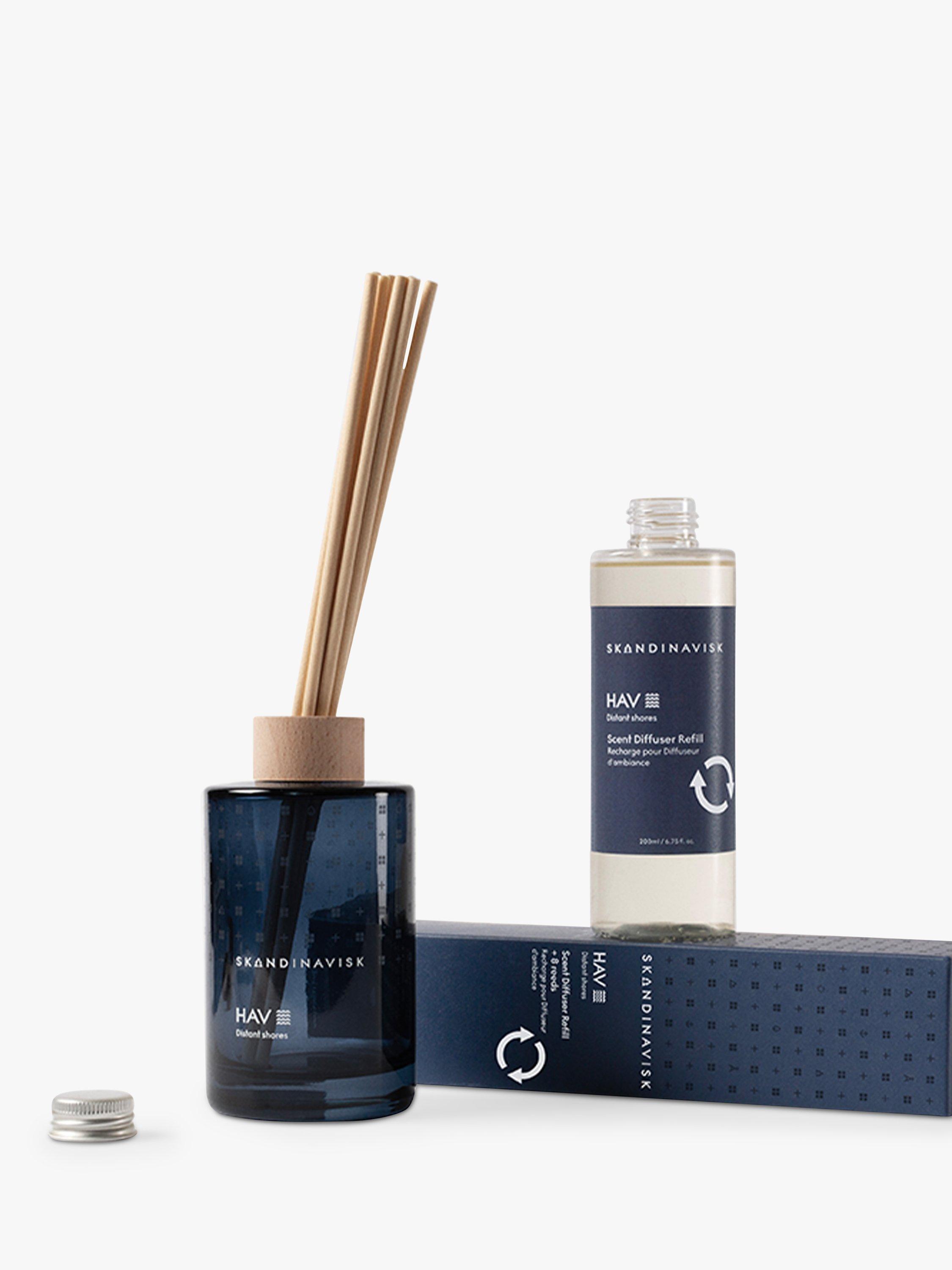 - DIFFUSER CARE. To use your refill simply remove the cap, carefully pour the fresh liquid into your original Skandinavisk glass bottle and add the new reeds - the more reeds used, the stronger the scent. Will scent a room for 3+ months. Please rinse and recycle the empty refill bottle.