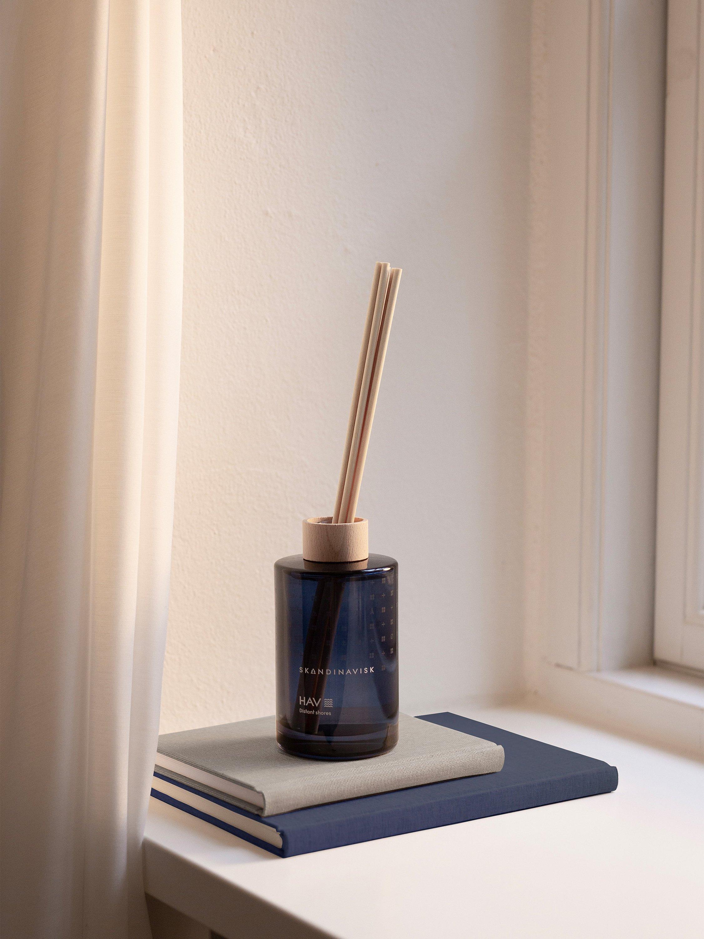 - DIFFUSER CARE: To use your Skandinavisk diffuser, place the reeds into the liquid – the more reeds used, the stronger the scent. Will scent a room for 3+ months.