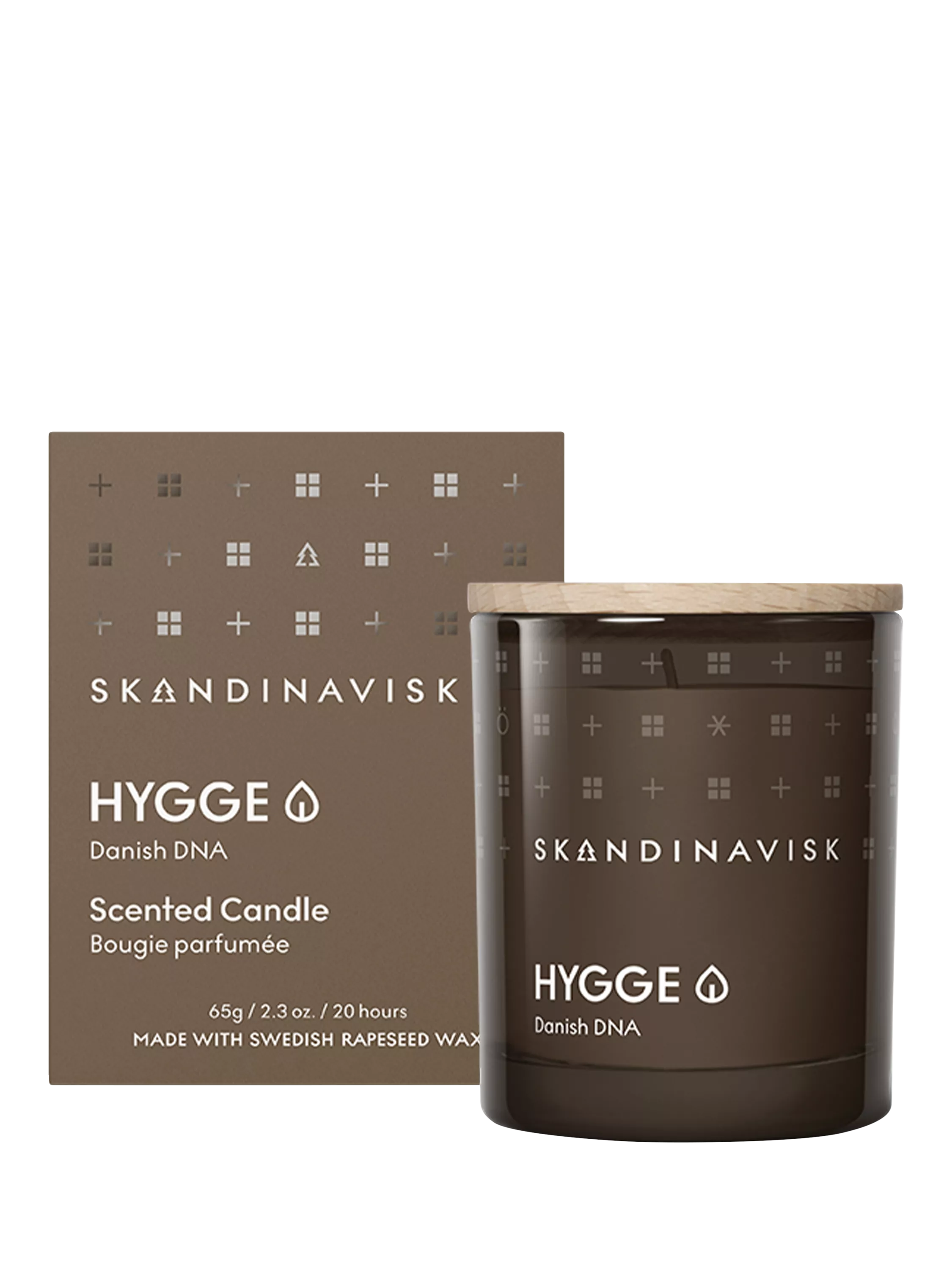 Poured into a painted glass votive with engraved FSC-certified beechwood lid. Packaging card from managed Swedish forests with natural colour dyes.