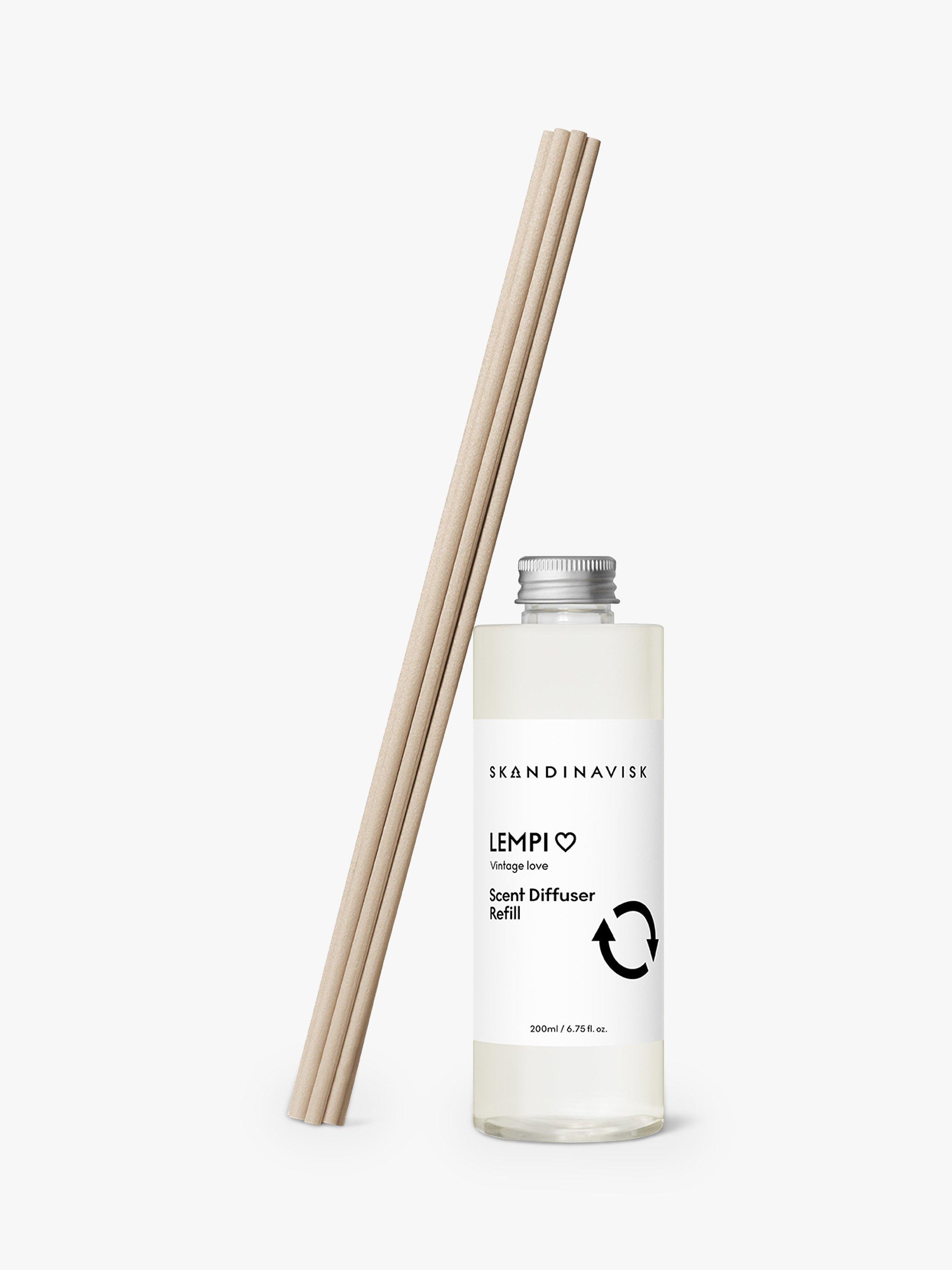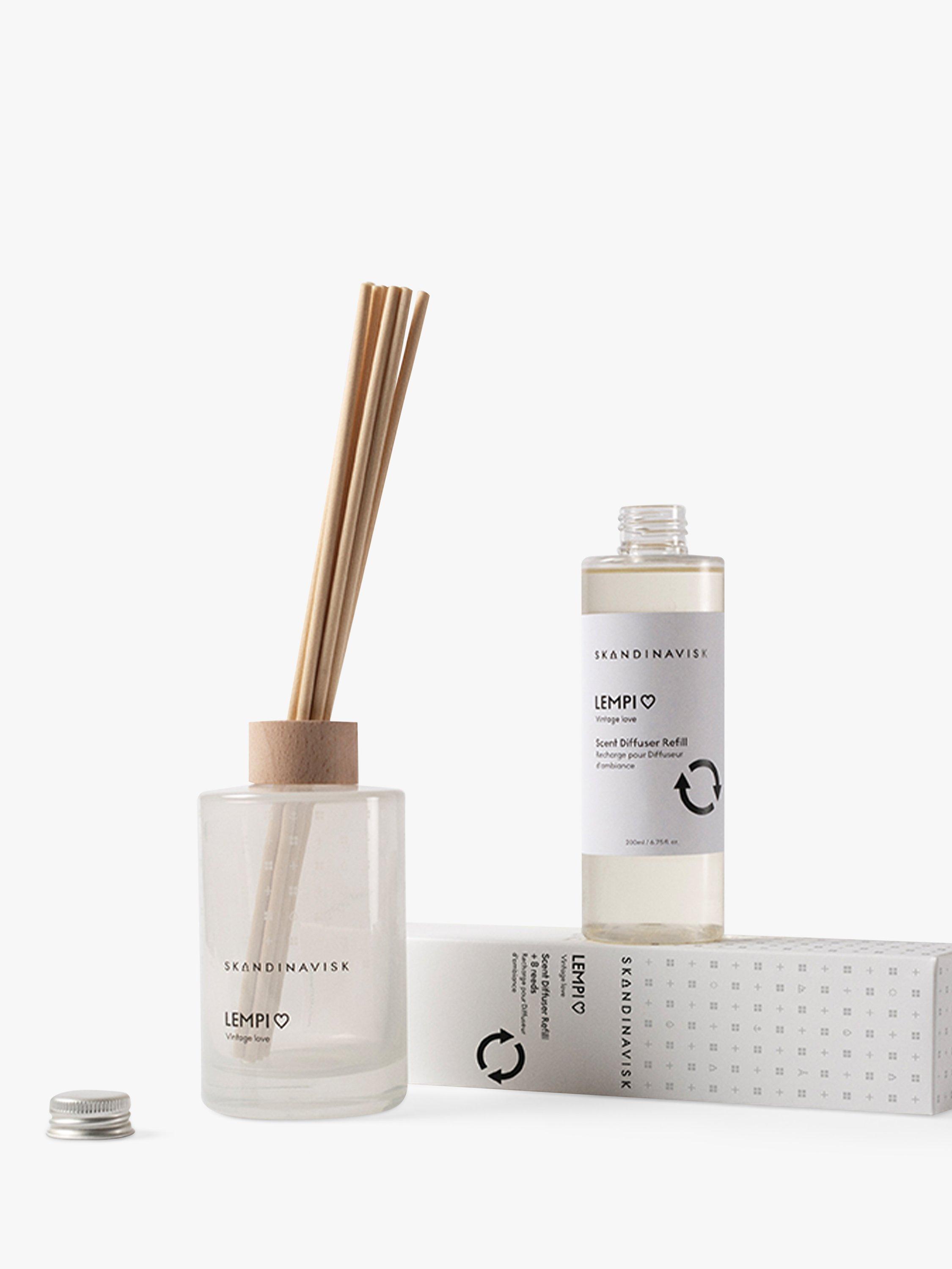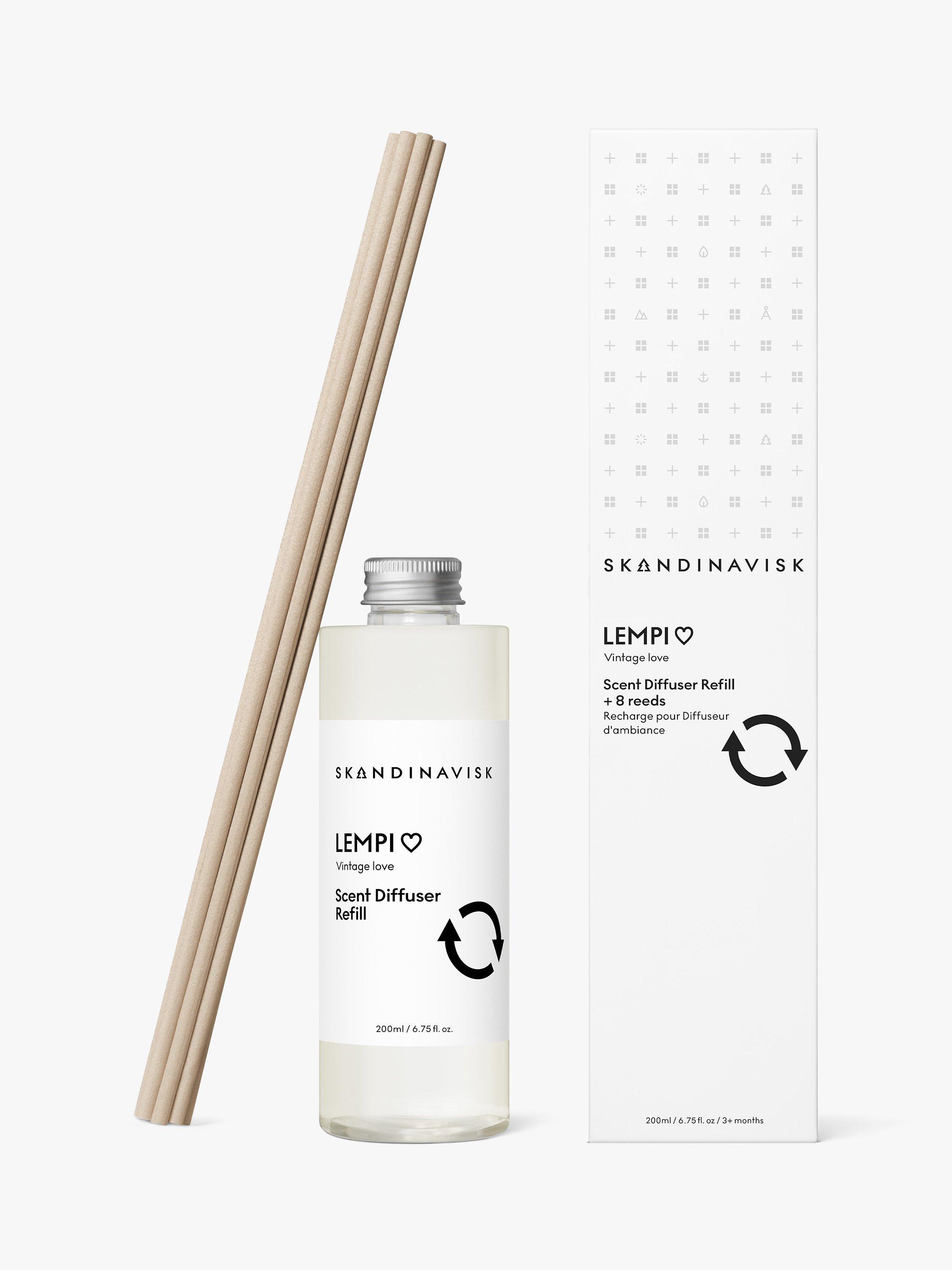 - DIFFUSER CARE. To use your refill simply remove the cap, carefully pour the fresh liquid into your original Skandinavisk glass bottle and add the new reeds - the more reeds used, the stronger the scent. Will scent a room for 3+ months. Please rinse and recycle the empty refill bottle.