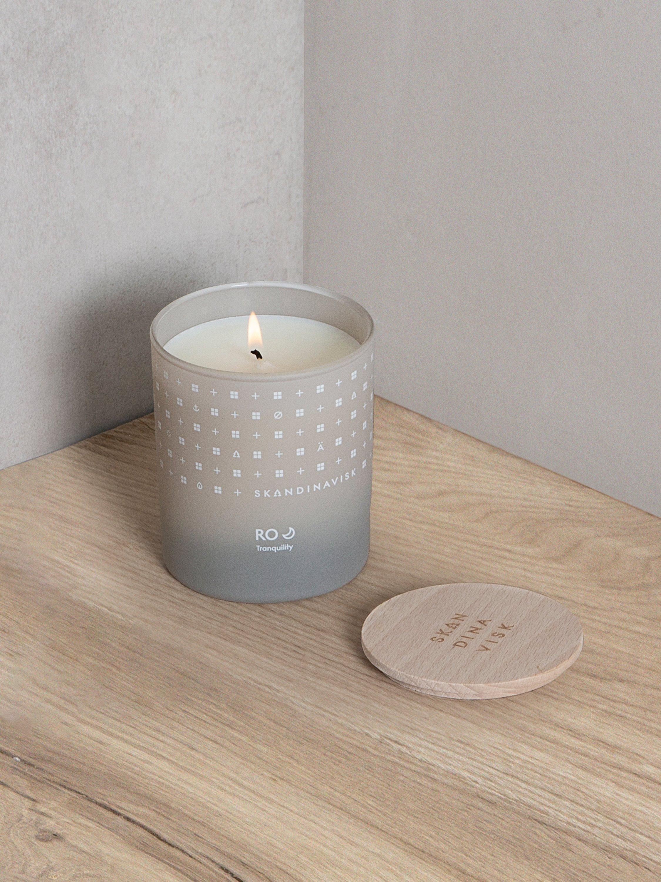 Scented candle with wax sourced from Swedish rapeseed oil and blended to burn stably and slowly. Poured into a painted glass votive with an engraved beechwood lid. Packaging card from Swedish forests with natural colour dyes.