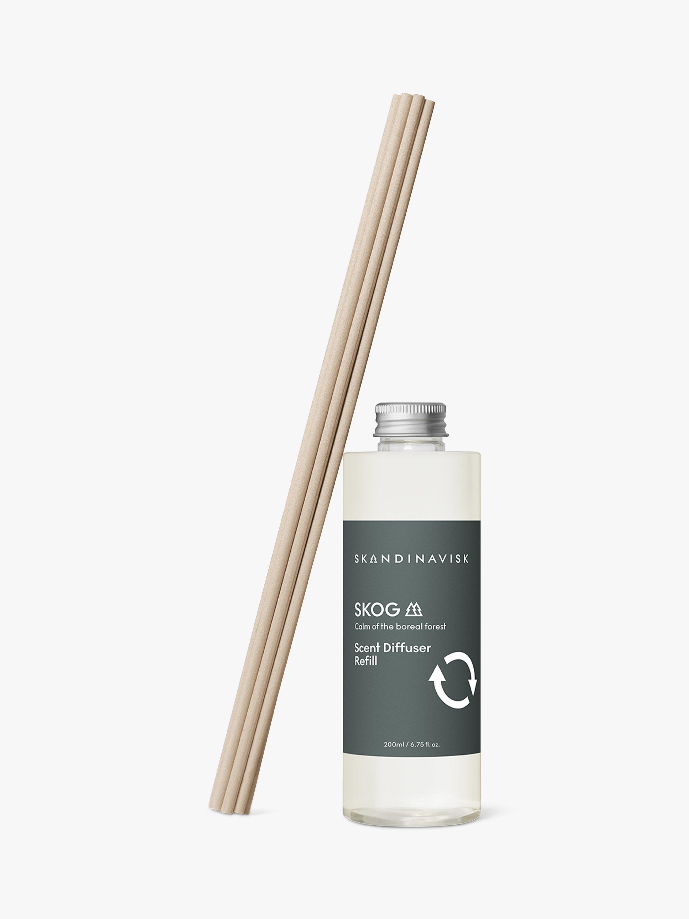 - DIFFUSER CARE. To use your refill simply remove the cap, carefully pour the fresh liquid into your original Skandinavisk glass bottle and add the new reeds - the more reeds used, the stronger the scent. Will scent a room for 3+ months. Please rinse and recycle the empty refill bottle.