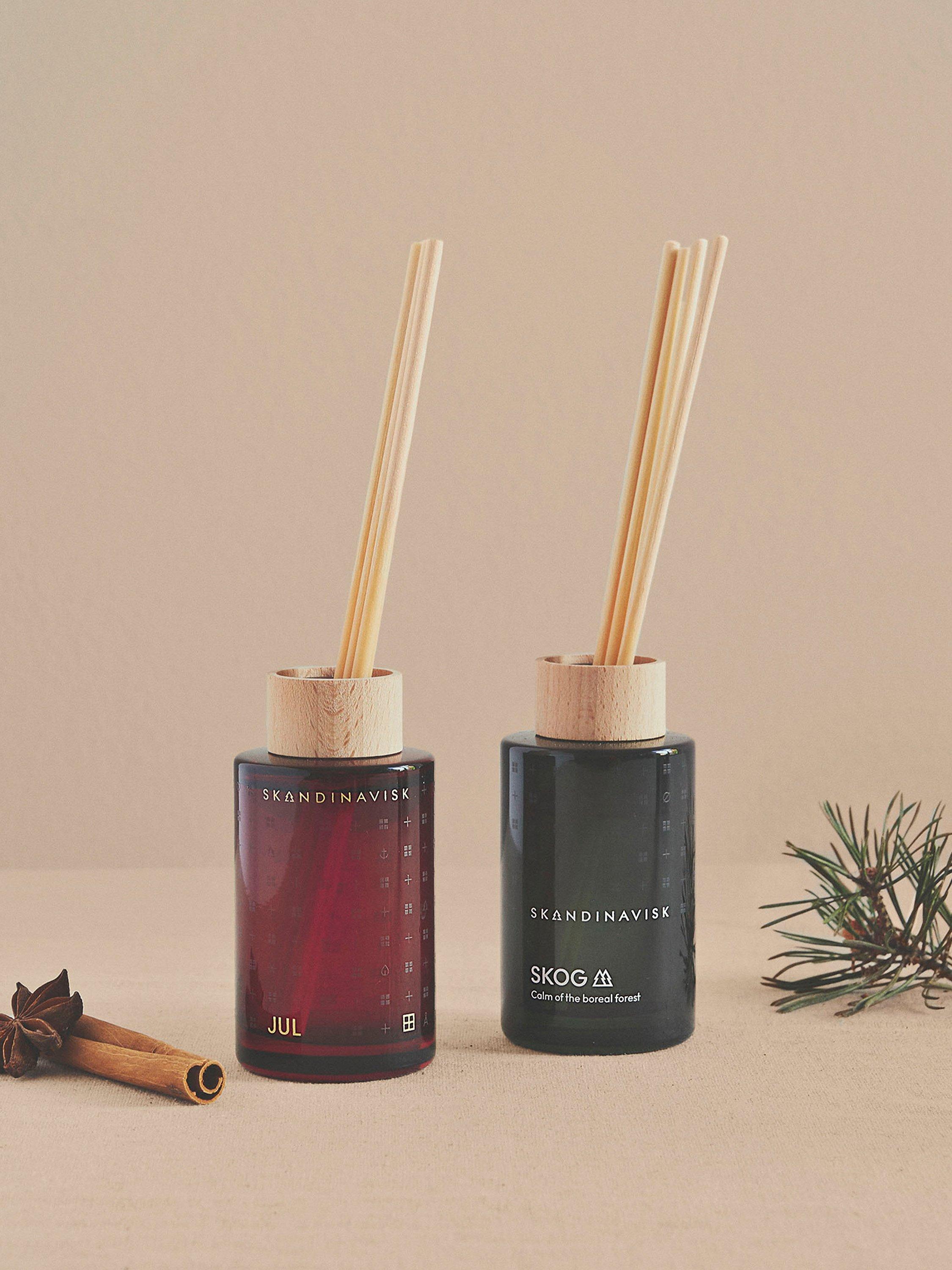 - DIFFUSER CARE: To use your Skandinavisk diffuser, place the reeds into the liquid – the more reeds used, the stronger the scent. Will scent a room for up to 3 months