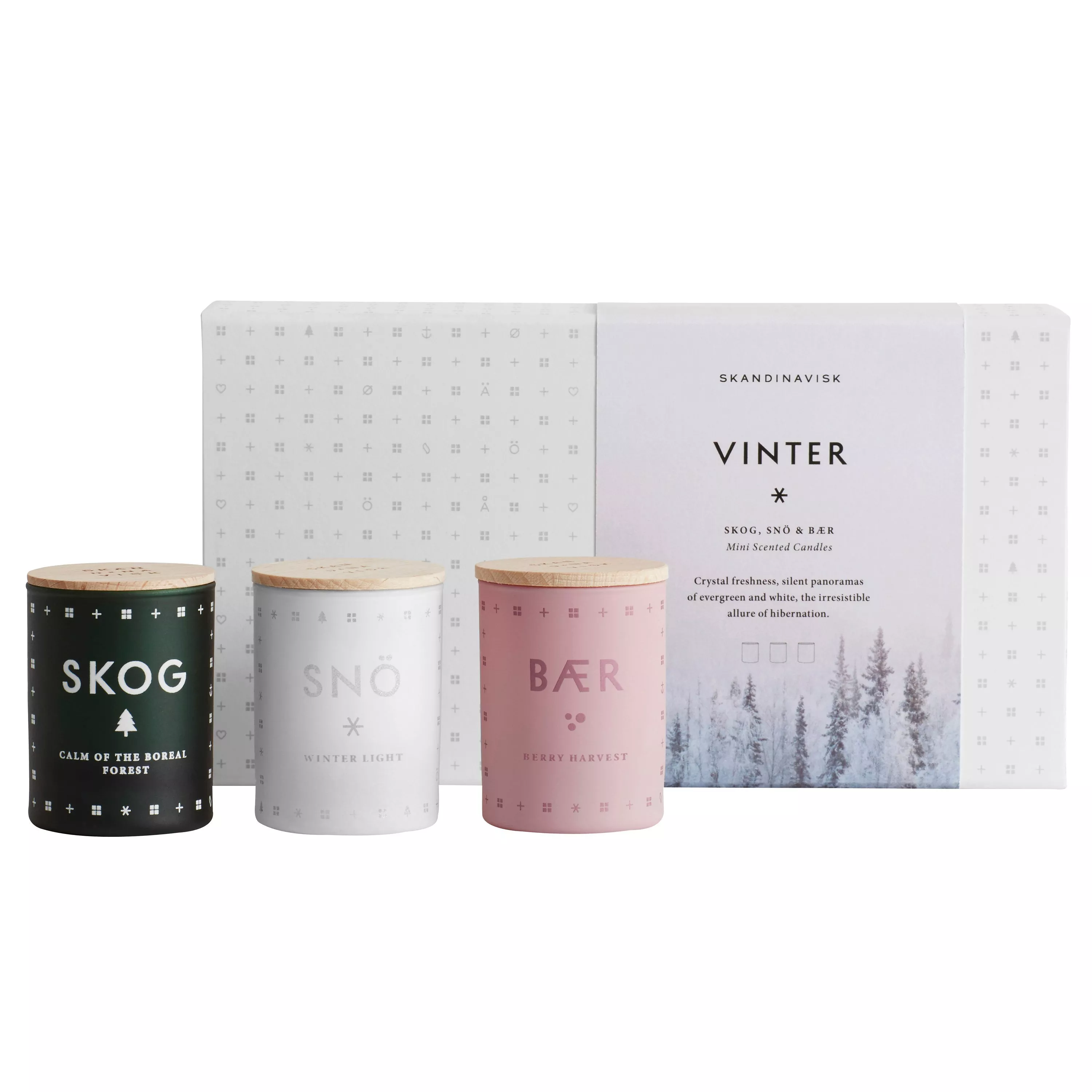 Evoke festive memories and feelings of cosiness and calm with the SKANDINAVISK Vinter gift set. SKOG, SNO, BAER. A triptych of natural fragrances reflecting Scandinavia's winter landscapes.