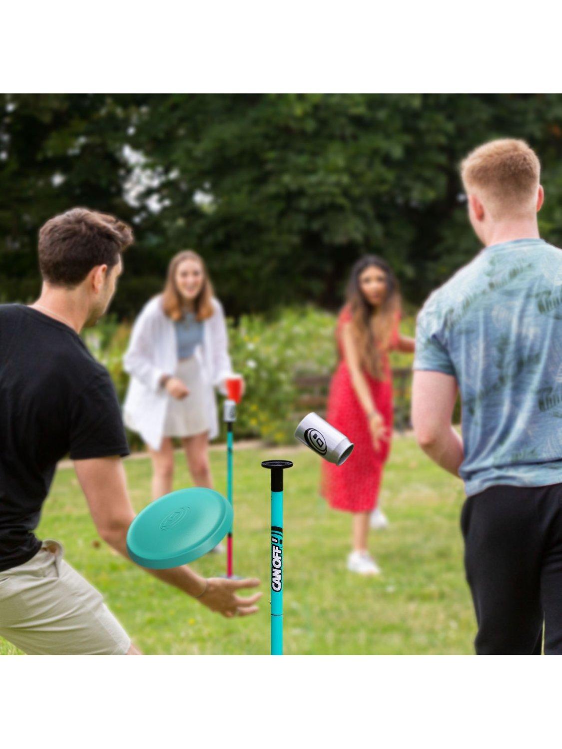 Active and competitive, Canoff The Flying Disc Game 2.0 is like a coconut shy but you play against an opponent involving a disc and Canoff official game cans. Heavier than standard cans, they're made from a thicker-gauge aluminium to withstand more impact.