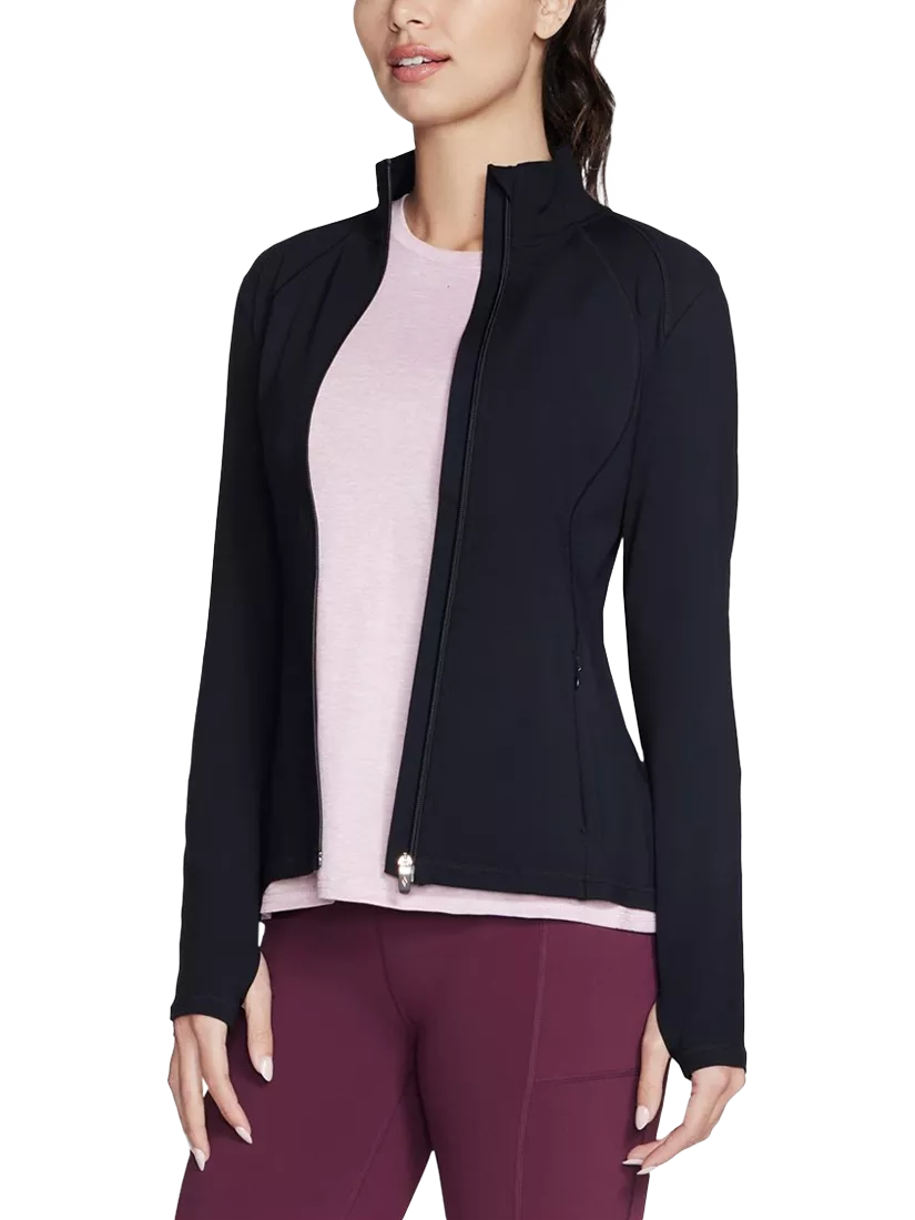 Walk further in flexible comfort and style with the Skechers GO WALK Jacket. This athletic mock neck zip-front jacket features long sleeves with thumbhole detail and on-seam concealed zip pockets.