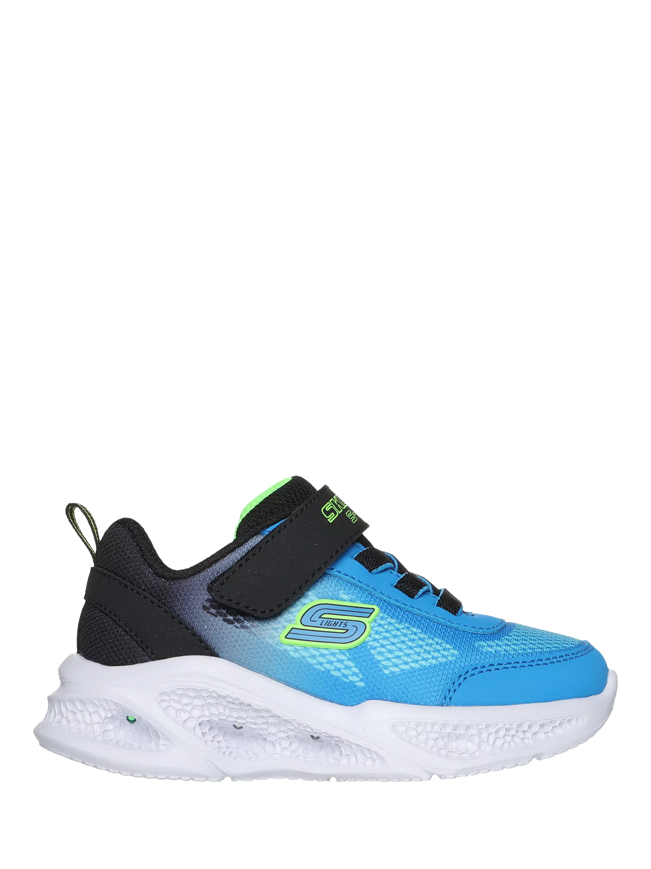 Gear up with light-up style and comfort Skechers S-Lights Meteor-Lights. This lighted design features a mesh and synthetic upper with stretch laces, adjustable instep strap and a cushioned comfort insole. Plus, the light-up midsole illuminates the fun in every step!