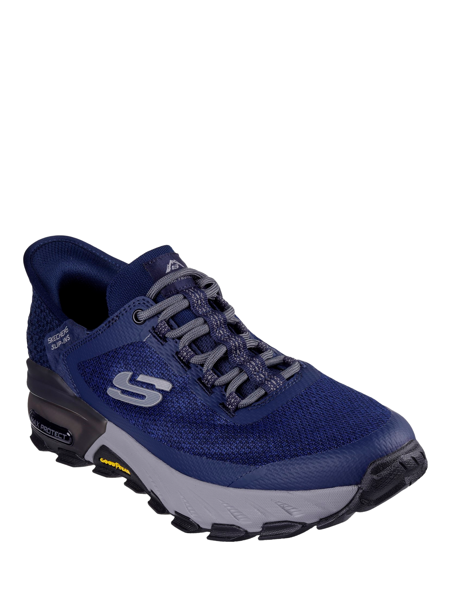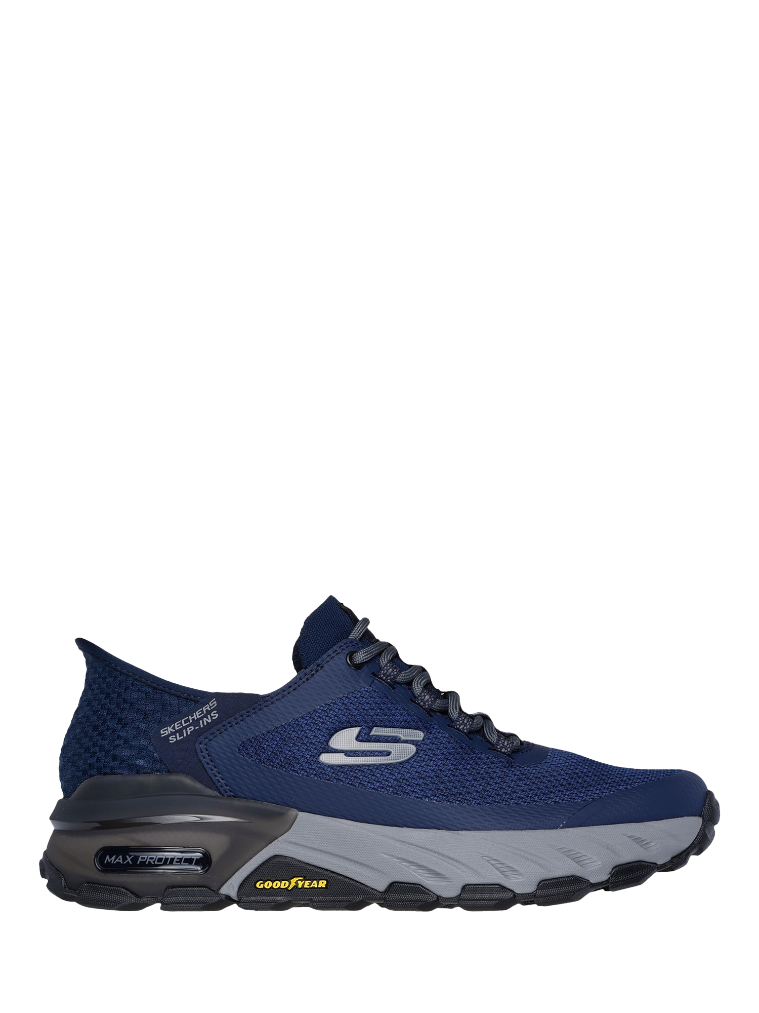 Stride through the day with durable comfort in Skechers Max Protect Assembly. This lace-up features an engineered mesh upper, Skechers Air-Cooled Memory Foam insole and a Goodyear performance outsole.