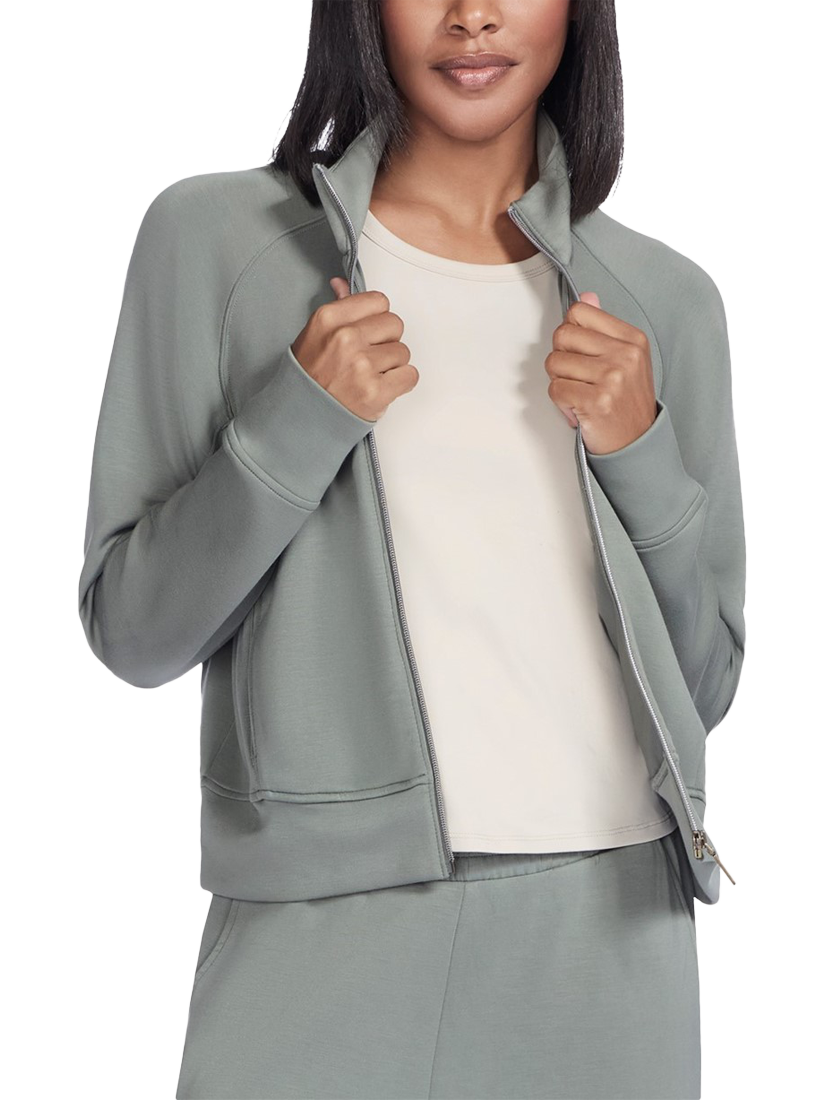 Feel the latest in softness technology wearing the SKECHLUXE Elevate Jacket. This full zip mock neck jacket features elasticised sleeve cuffs and bottom band, princess seams, and on seam hand pockets. It's finished with a Skechers metal plate logo.