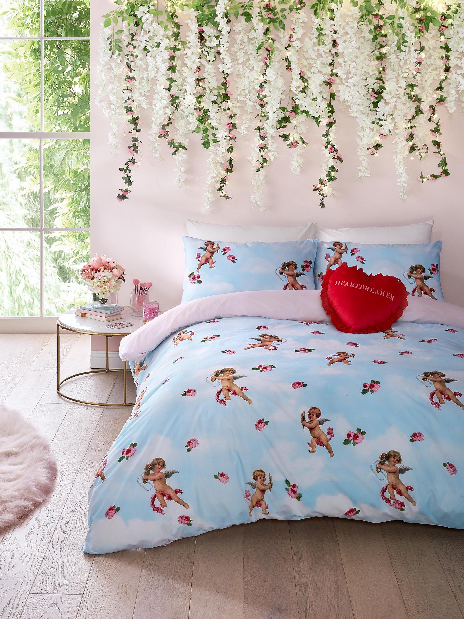 Skinnydip's cherubs and roses print duvet cover and pillowcase set lets you set a romantic scene in your bedroom.