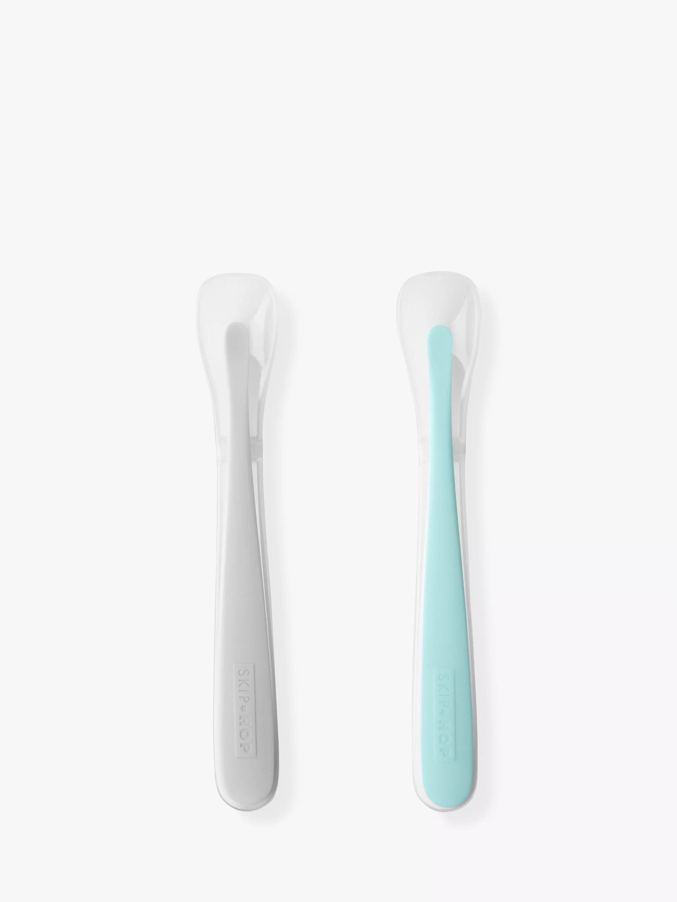 Crafted from soft and flexible silicone, this streamlined spoon set from Skip Hop is ultra-gentle on baby's gums making mealtimes easier.