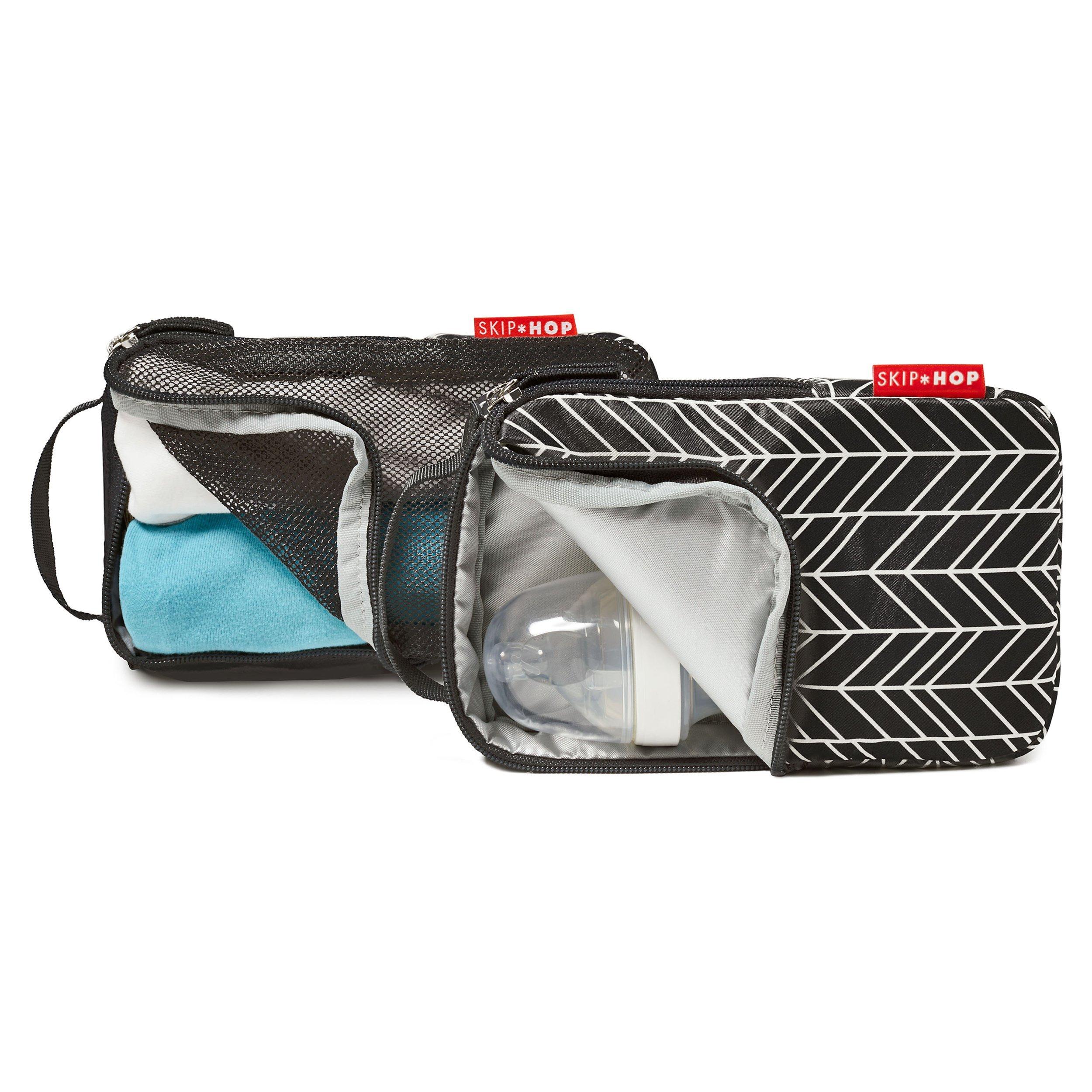 Made with insulating and lightweight fabric, this bag quilted backpack offers hands-free convenience and special packing cubes for baby's essentials.