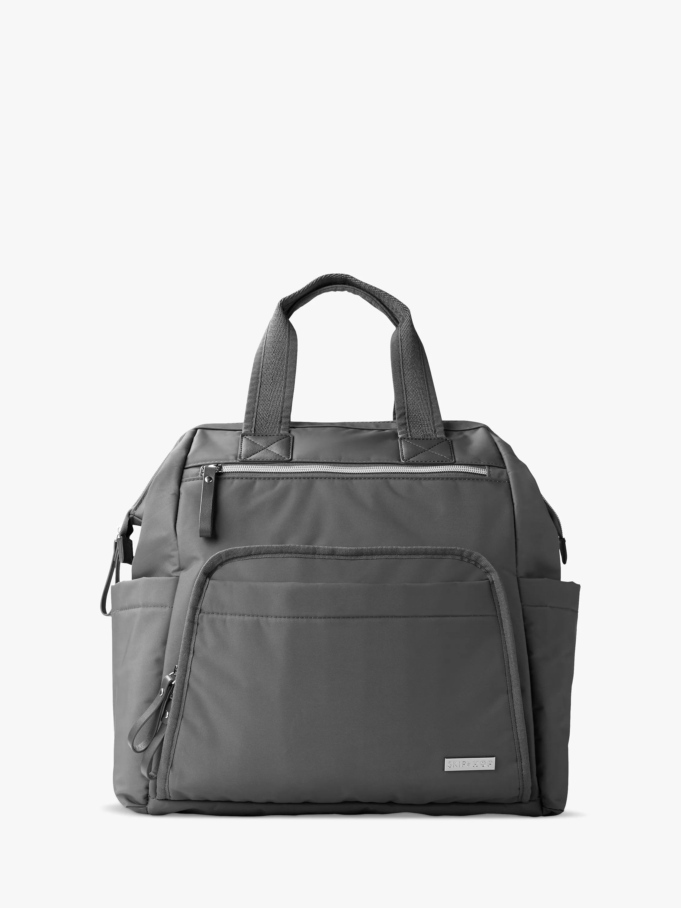Designed with a structured frame and zip closure, the main-frame changing bag from Skip Hop makes it easy to access everything that's needed whilst staying open for a clear view.