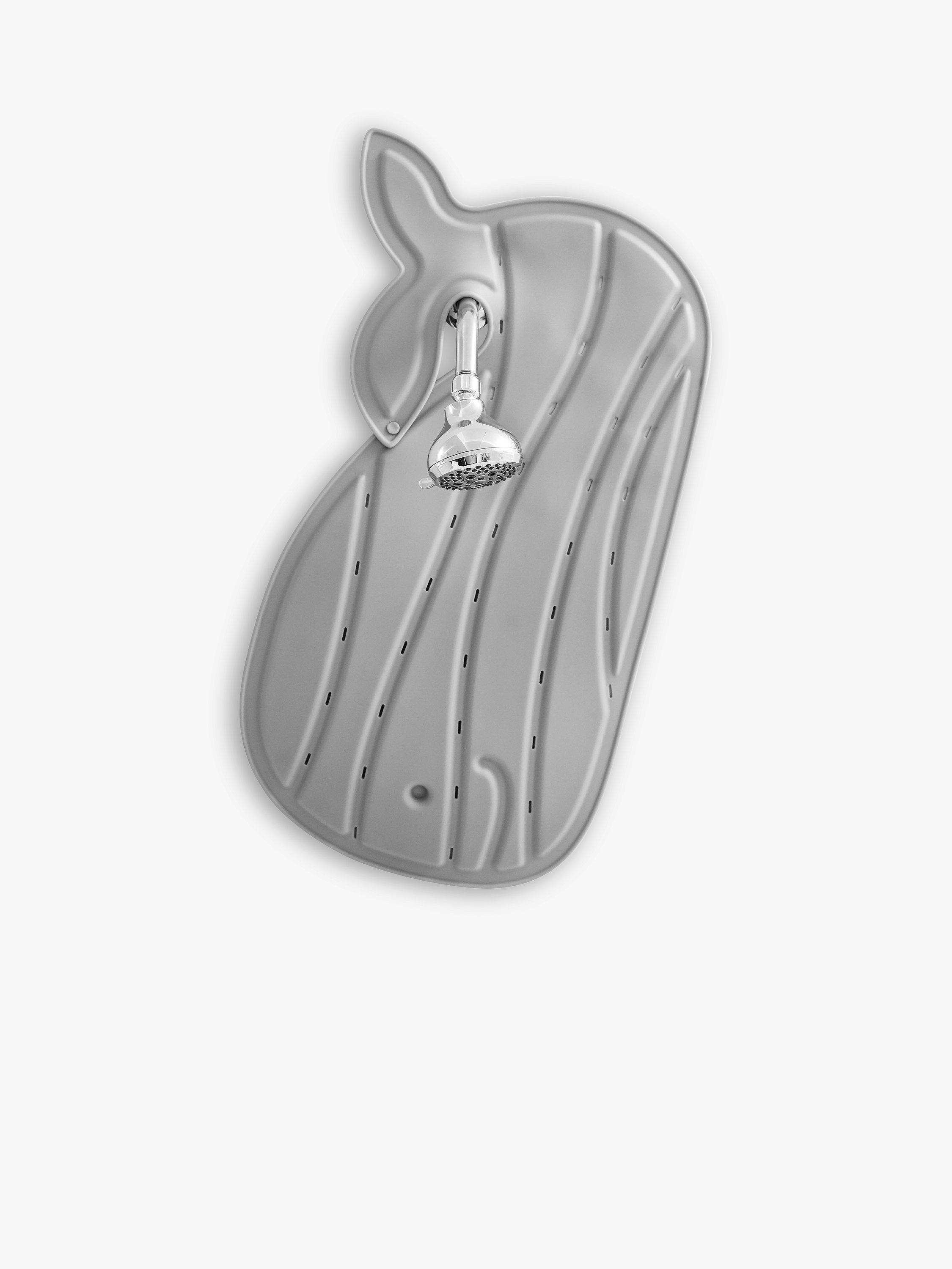 With a textured, non-slip surface, this playful and functional piece has the brand's signature whale shape and features all-over suction cups that stay put on your smooth bath surface. Perforations for drainage also allow quick drying and help reduce mildew build-up. When bathtime is done, the whale tail works as a handy hook that's easy to hang on your shower head or towel bar.
