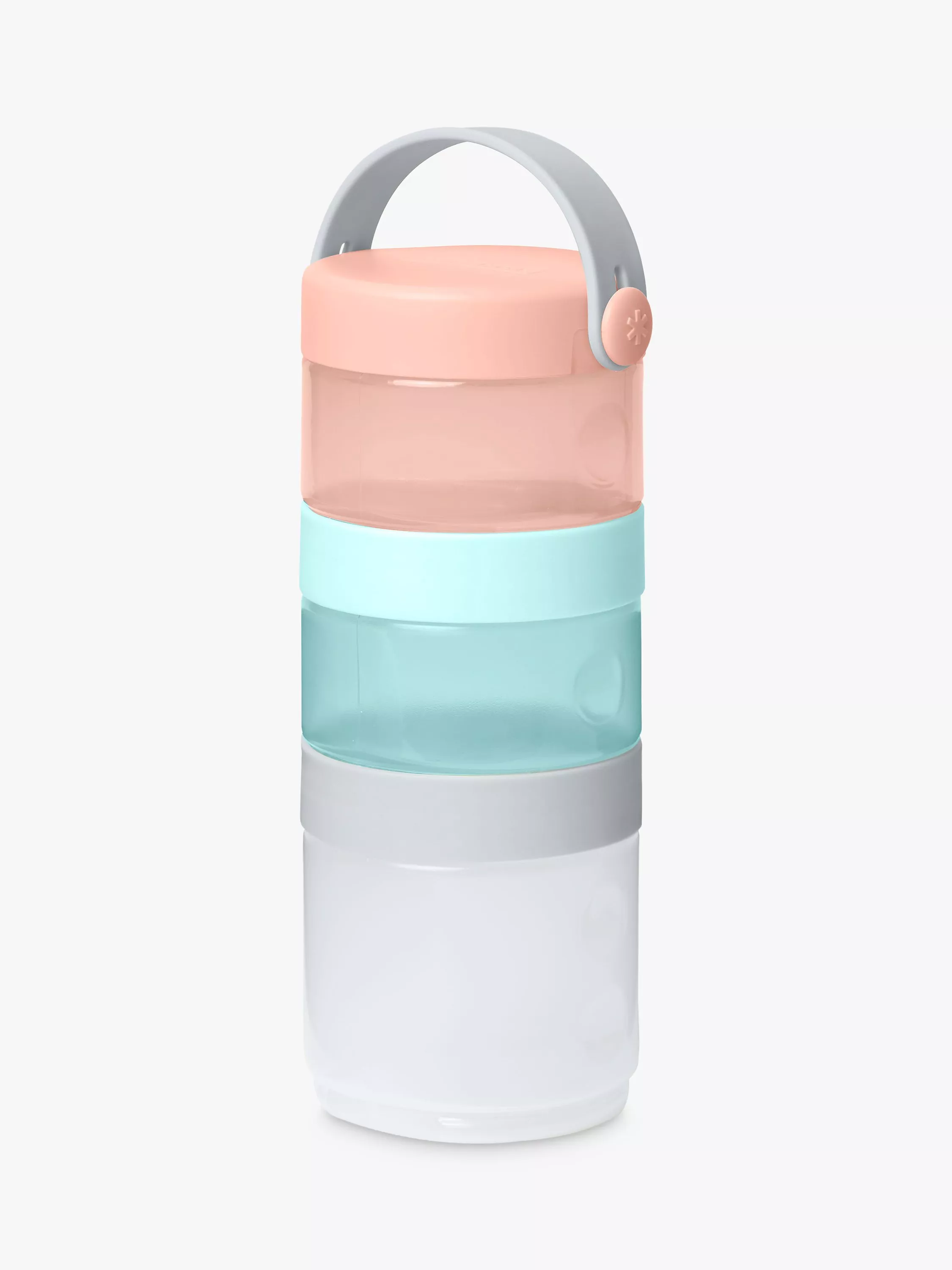 Featuring indented bodies for an easier grip, the transparent containers let you easily view what's inside. They can be used separately or stacked together and carried by the easy-grab top handle.